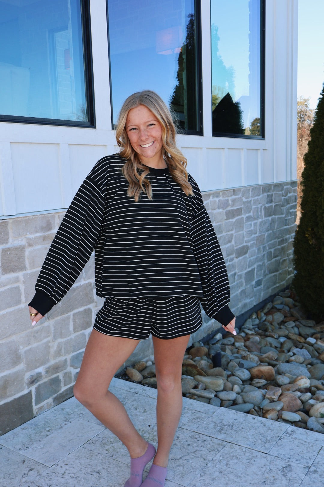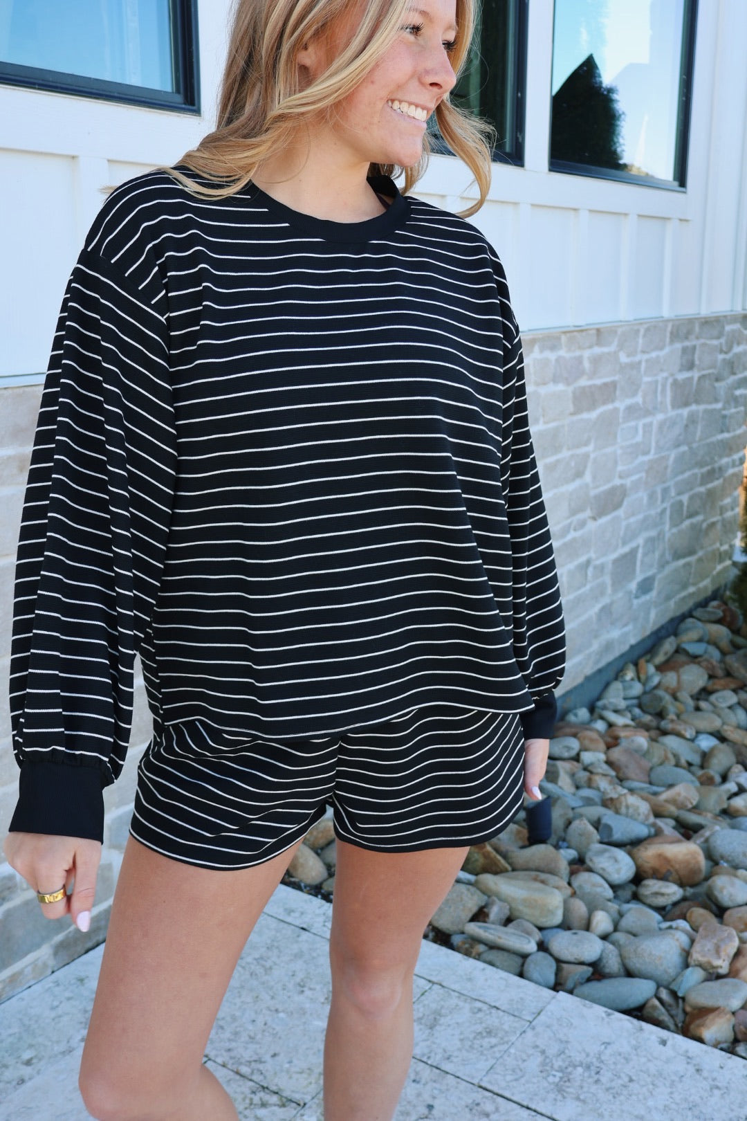 Black and White Stripe Short Set