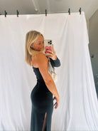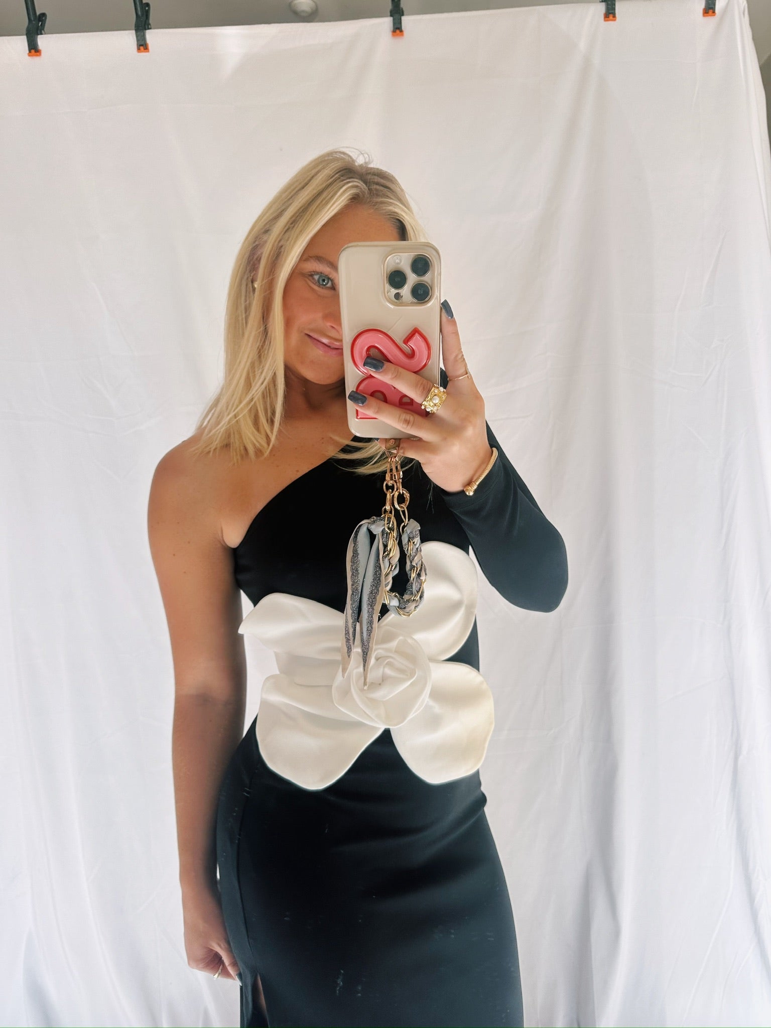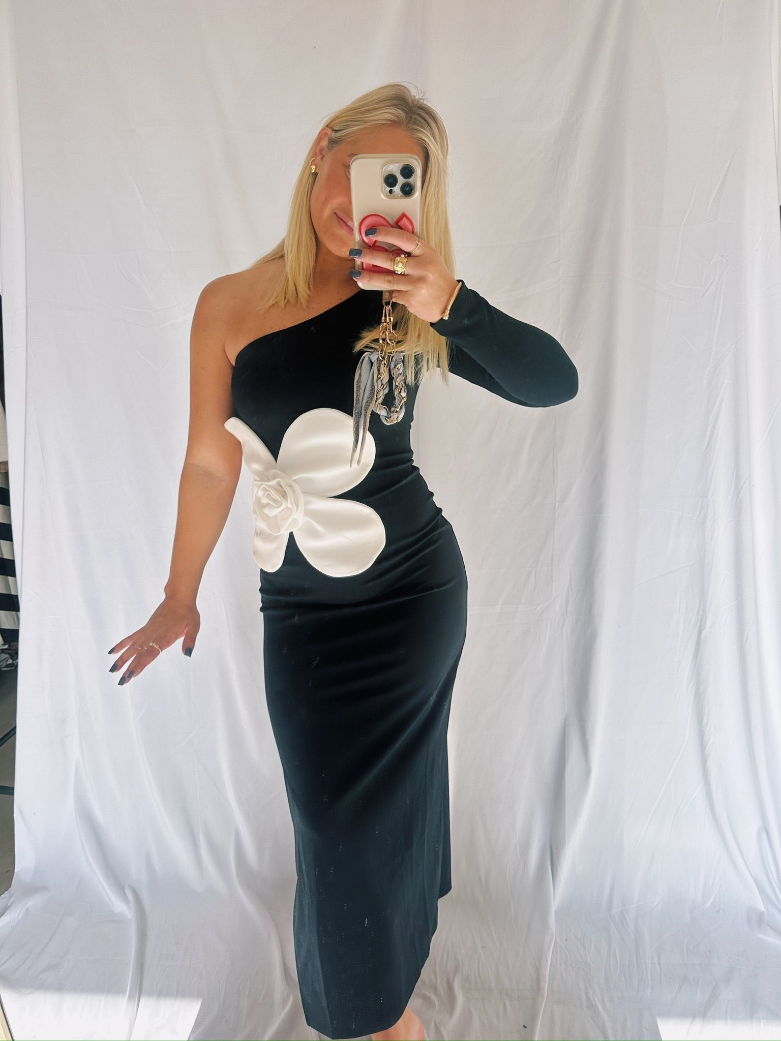 What an absolutely amazing dress in our Flower Statement Maxi! Such a fun dress with the large flower applique and the one shoulder. This dress fits perfectly and is very flattering.