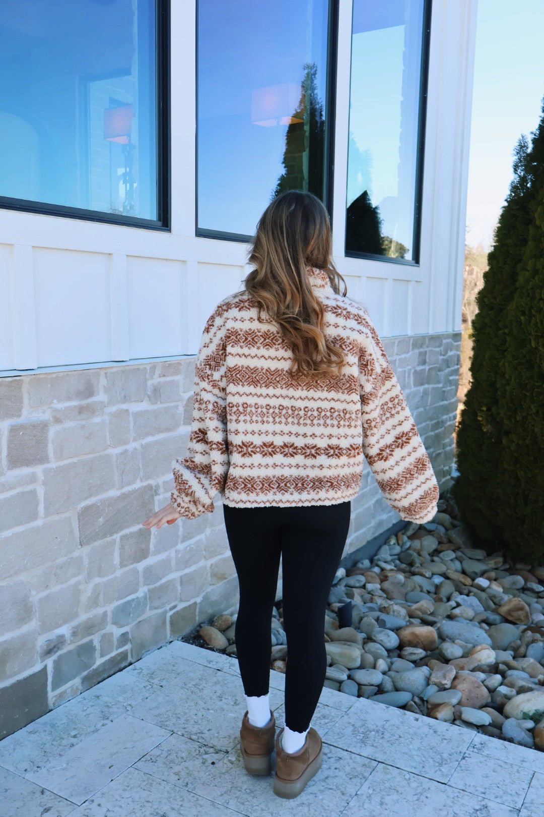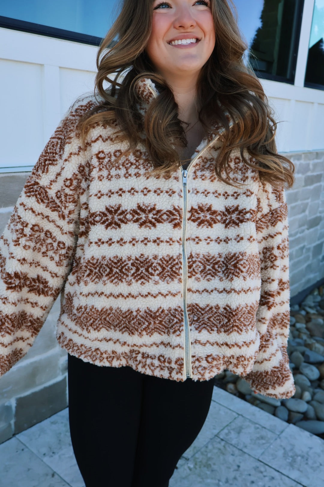 Fuzzy Fleece Zip-front Patterned Jacket