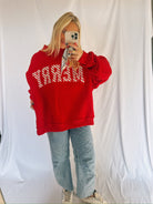 Our MERRY mock neck is a staple for the holiday season! The mock neck style is perfect! This sweatshirt does run oversized!