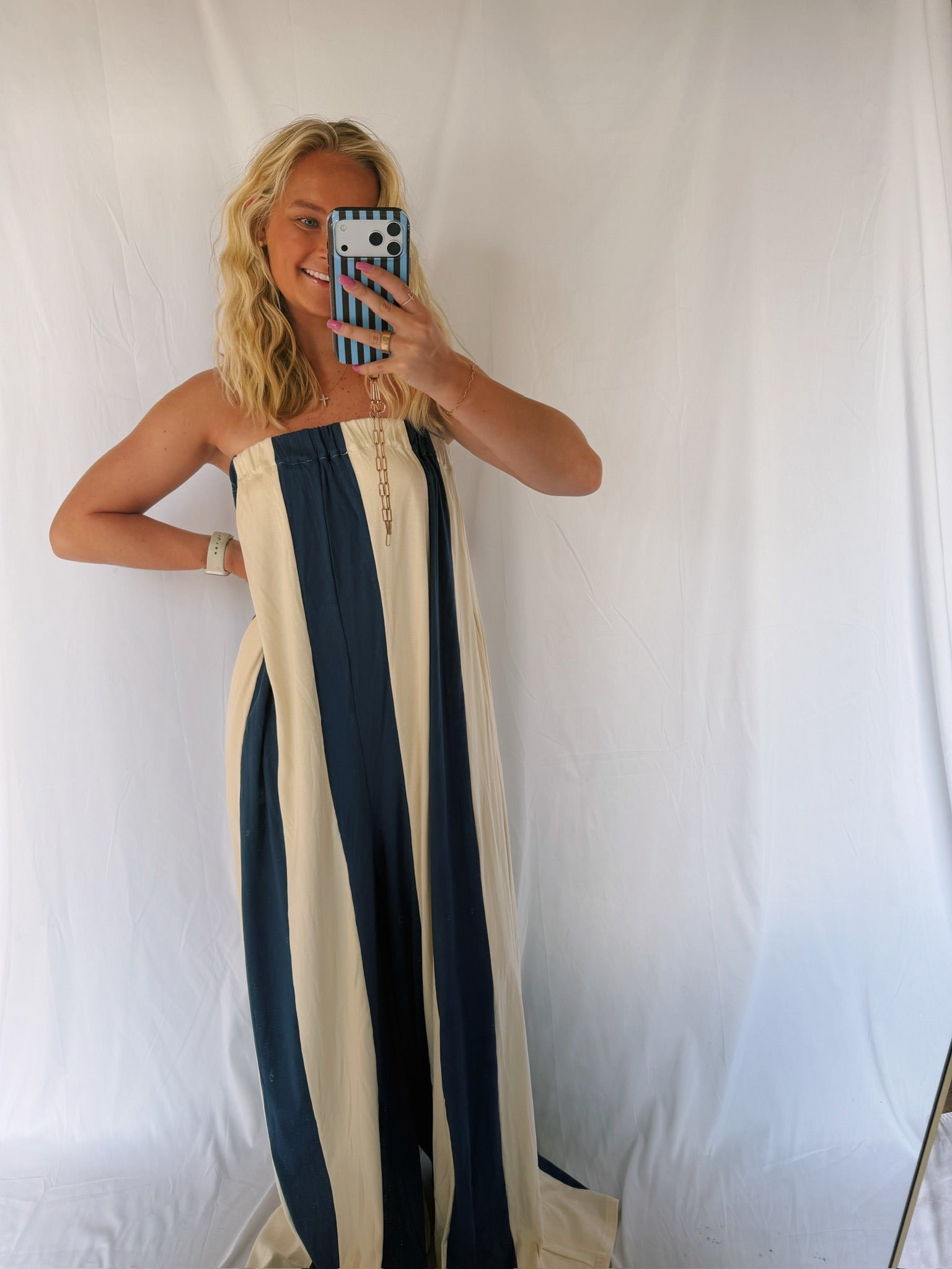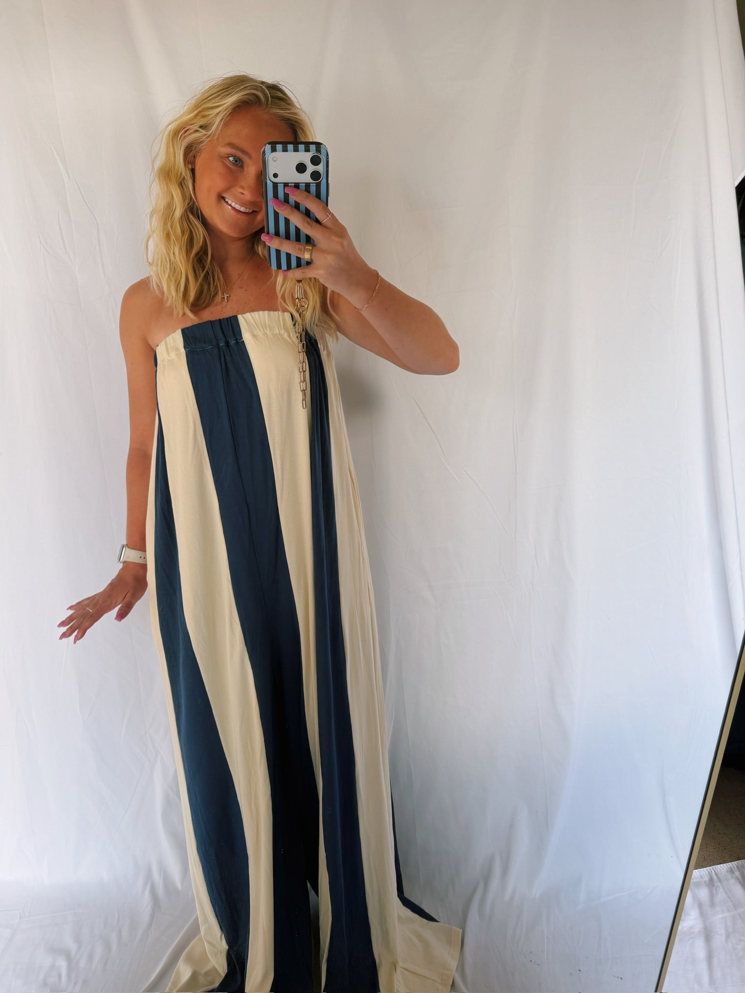 This jumper is the softest material ever! The jumper has a built in bandeau top for comfort! This jumper is most definitely for a taller girl!