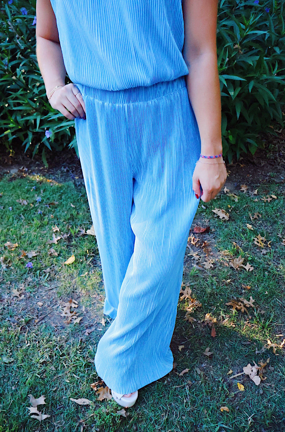 This beautiful sky blue top and pant set is so comfortable for travel, lounge wear, or even to dress up! For sure a must have in your closet!