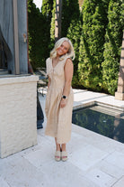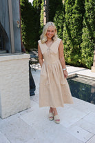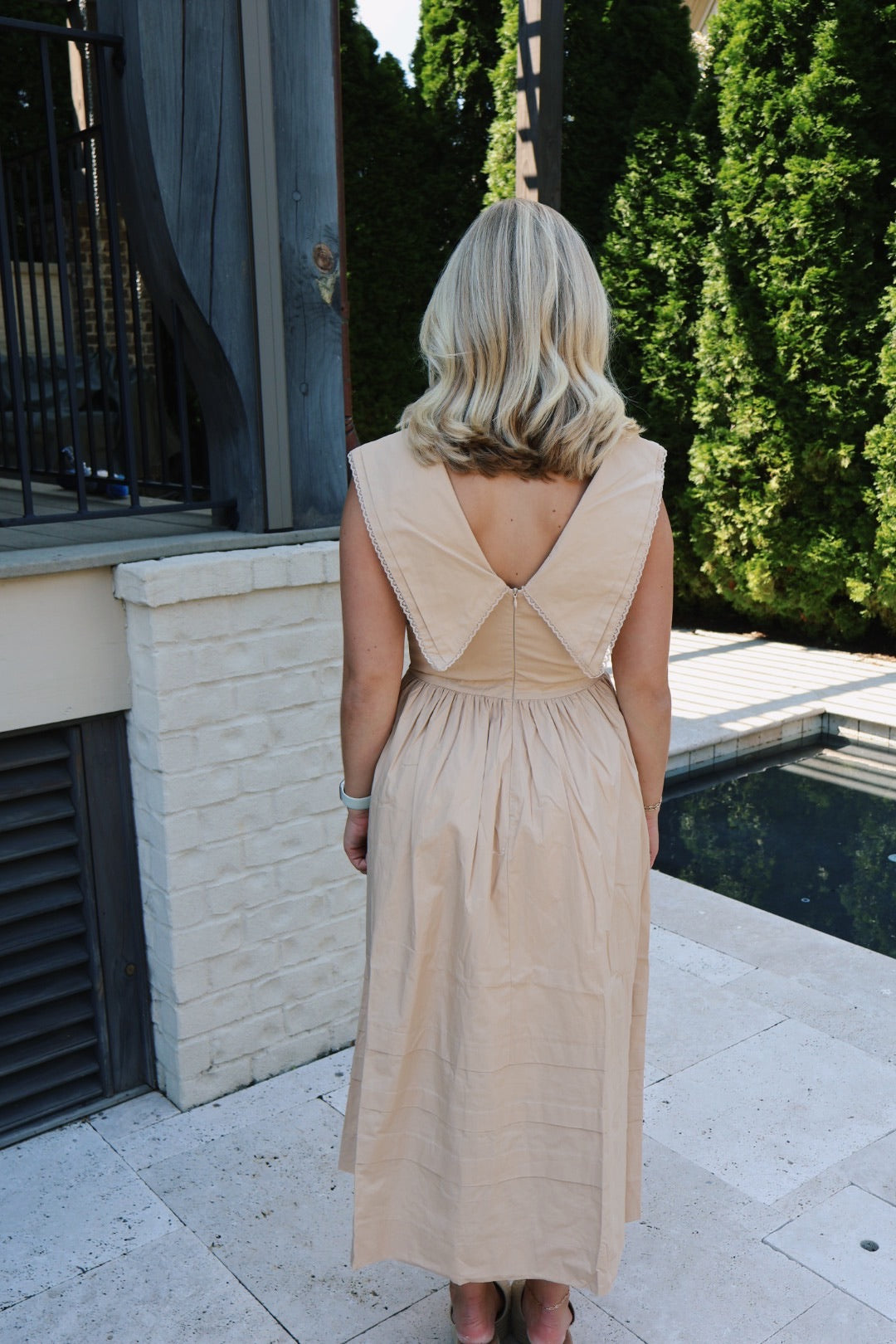 Our babydoll midi! We are obsessed with the collard neck look and the bow tie on the front! This midi has a zipper up the back to fit perfectly!