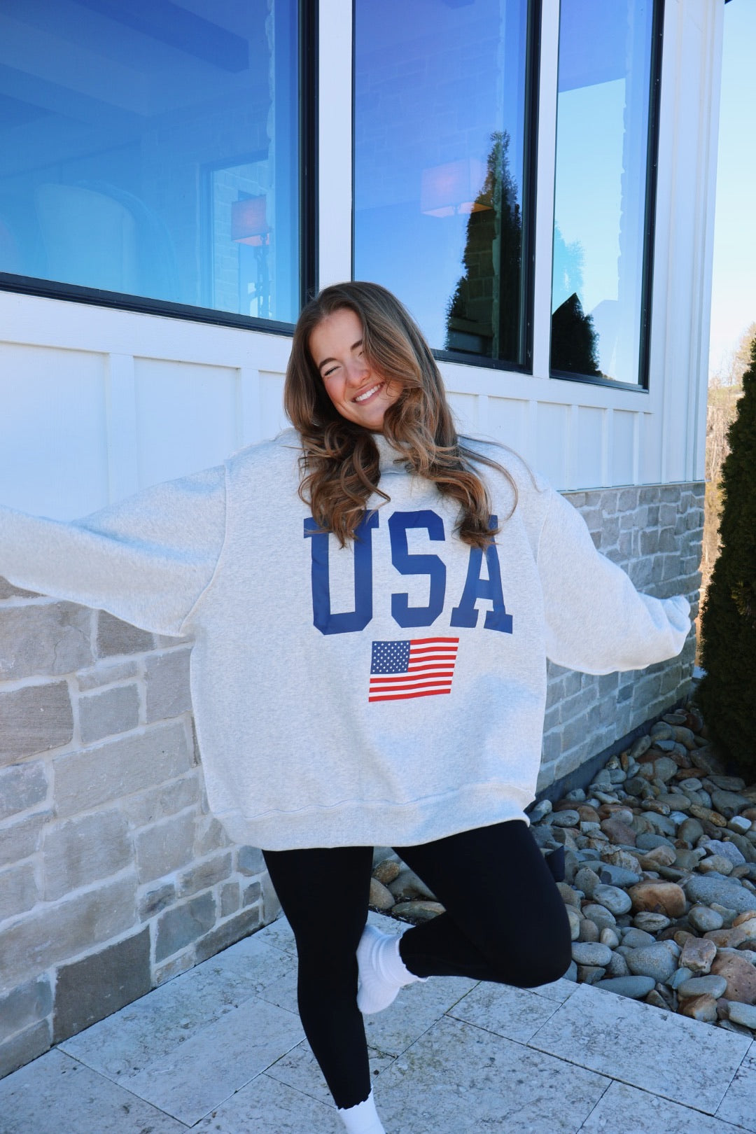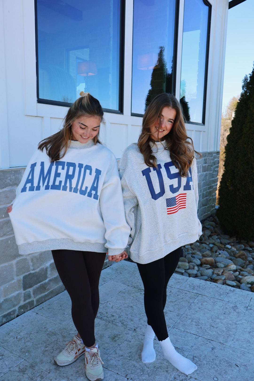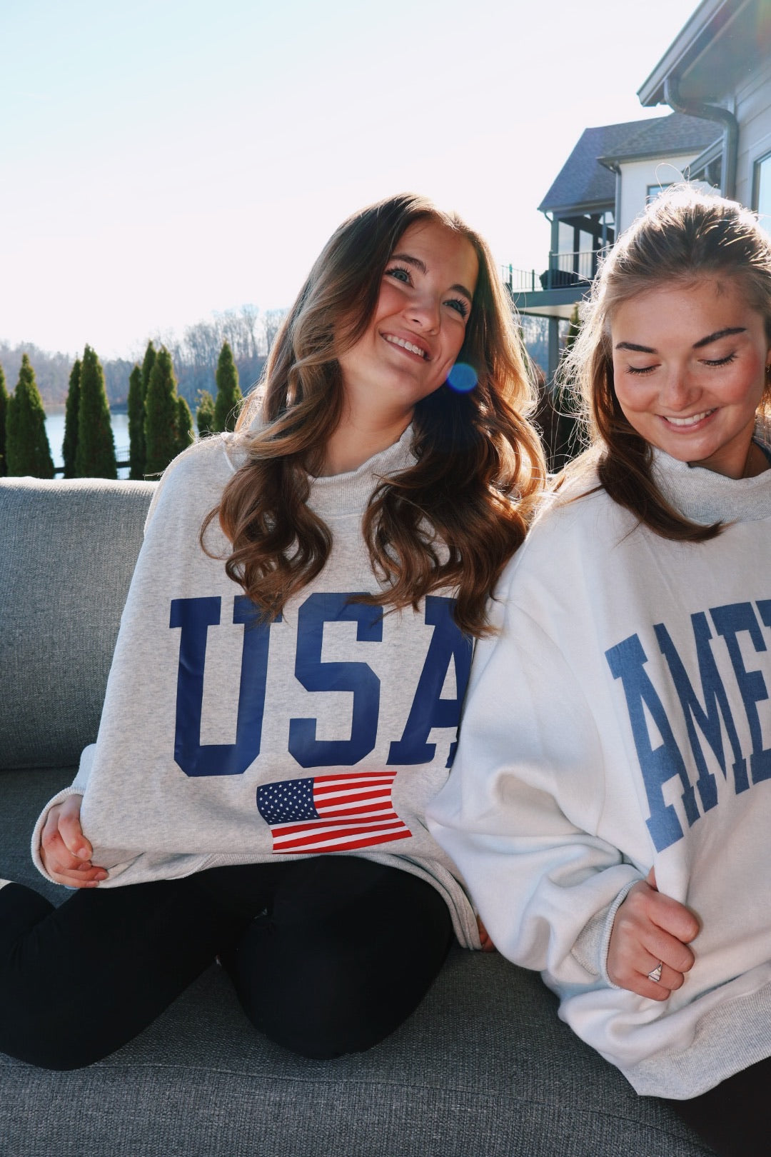 Our reversible mock neck USA/America sweatshirt! We are obsessed! Can be worn either way!