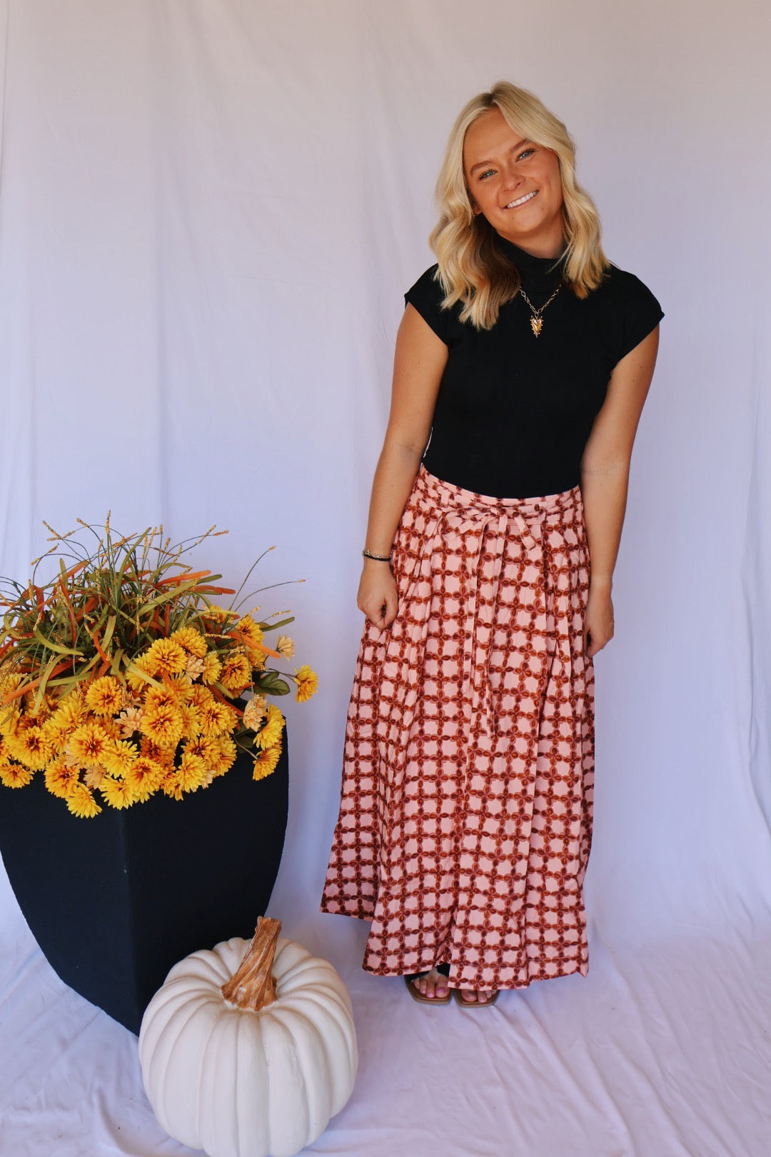 This skirt! Maxi skirts are totally in, and this one is perfect for the fall! So versatile to dress up or down! The colors of this skirt are to die for!