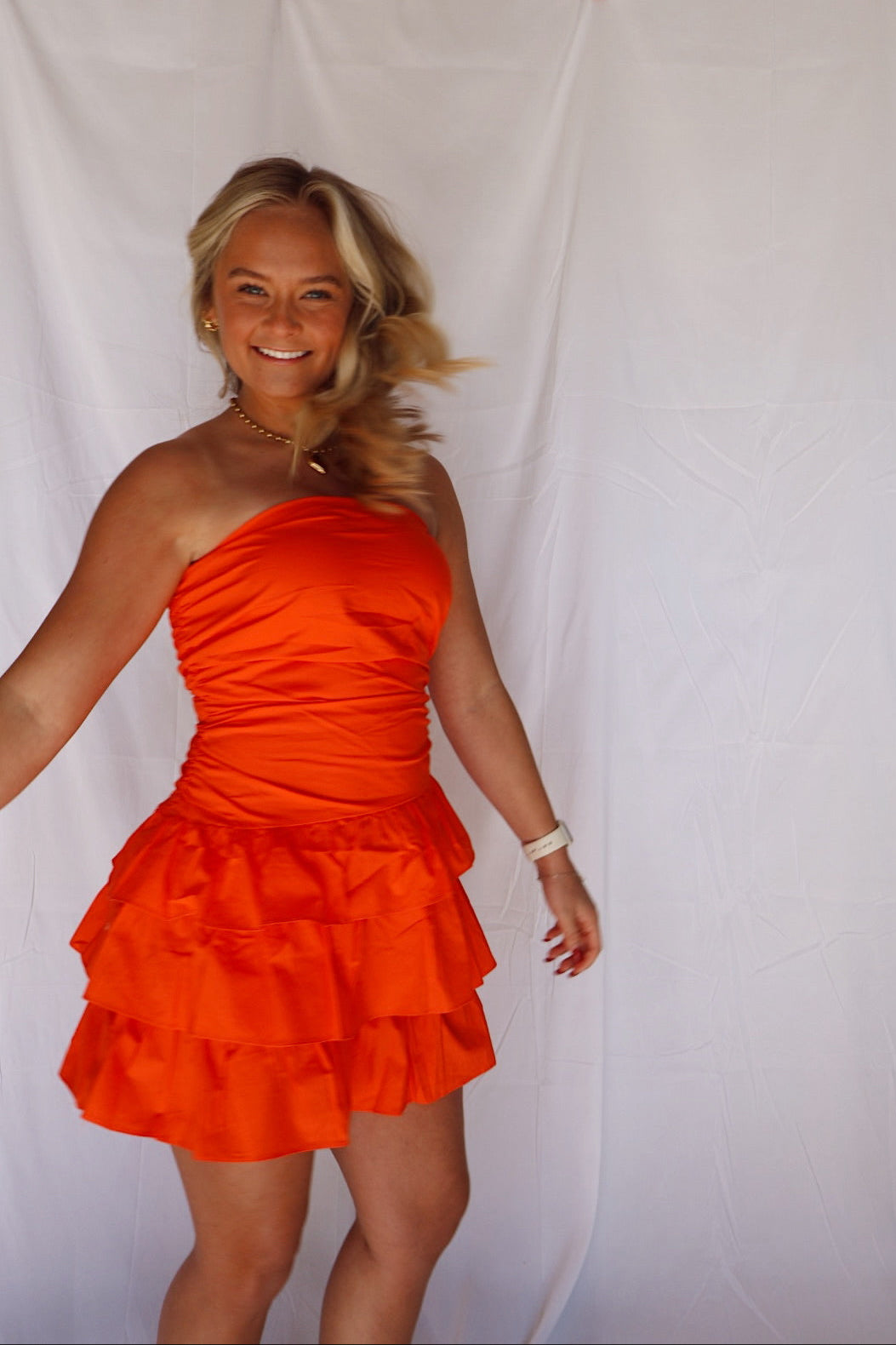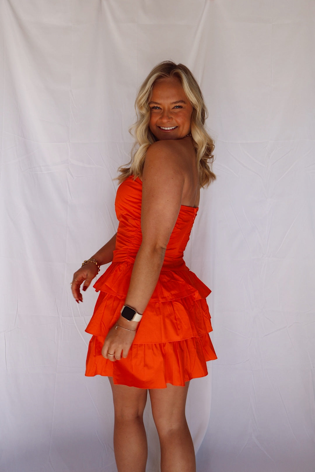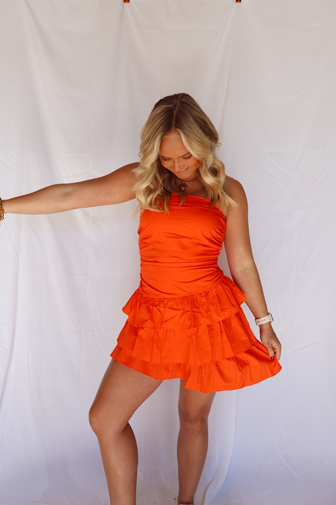 Sunkist Strapless Ruffle Mini Dress