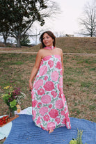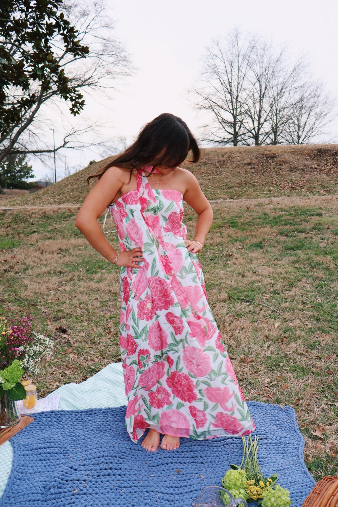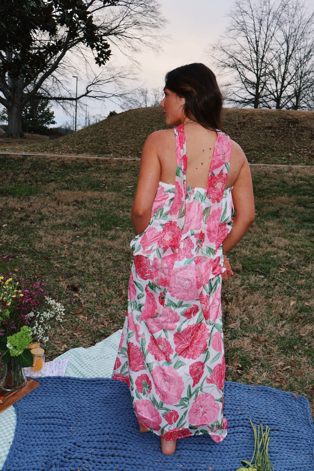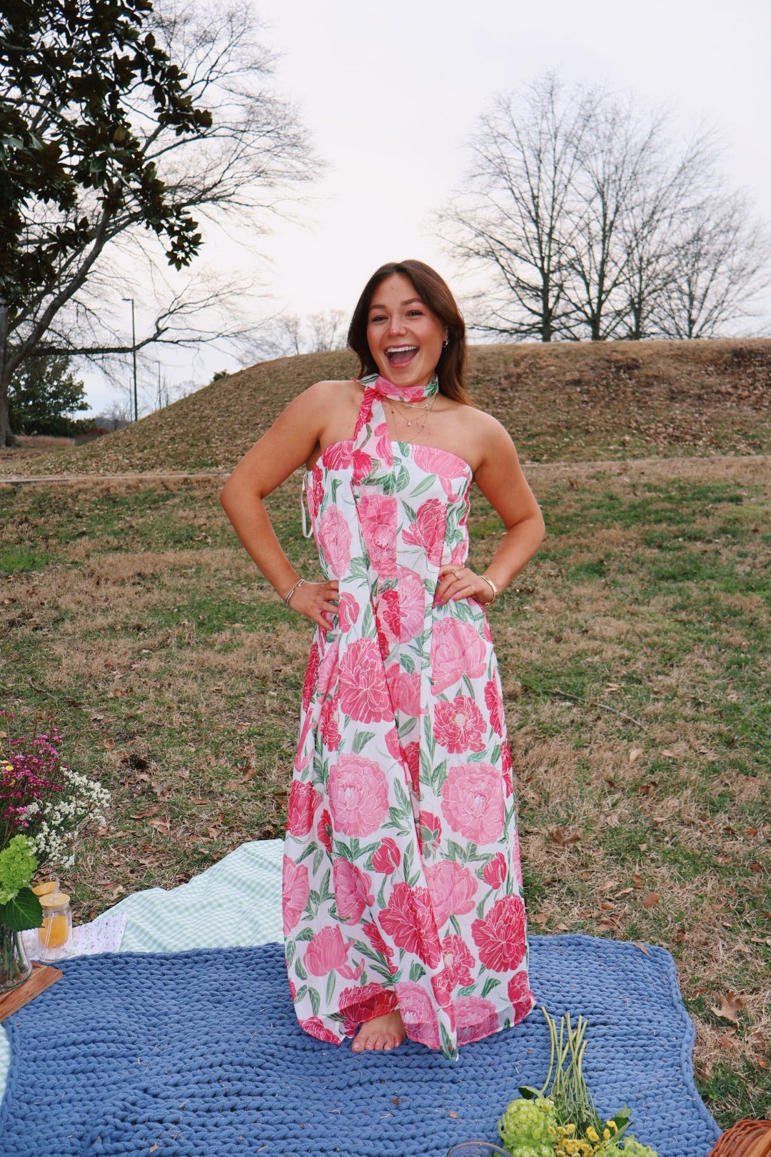 This dress! So stunning! The perfect flowy beach dress for any occasion! The scarf can be worn multiple ways, or without it! The dress is flowy and stretchy!