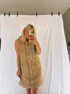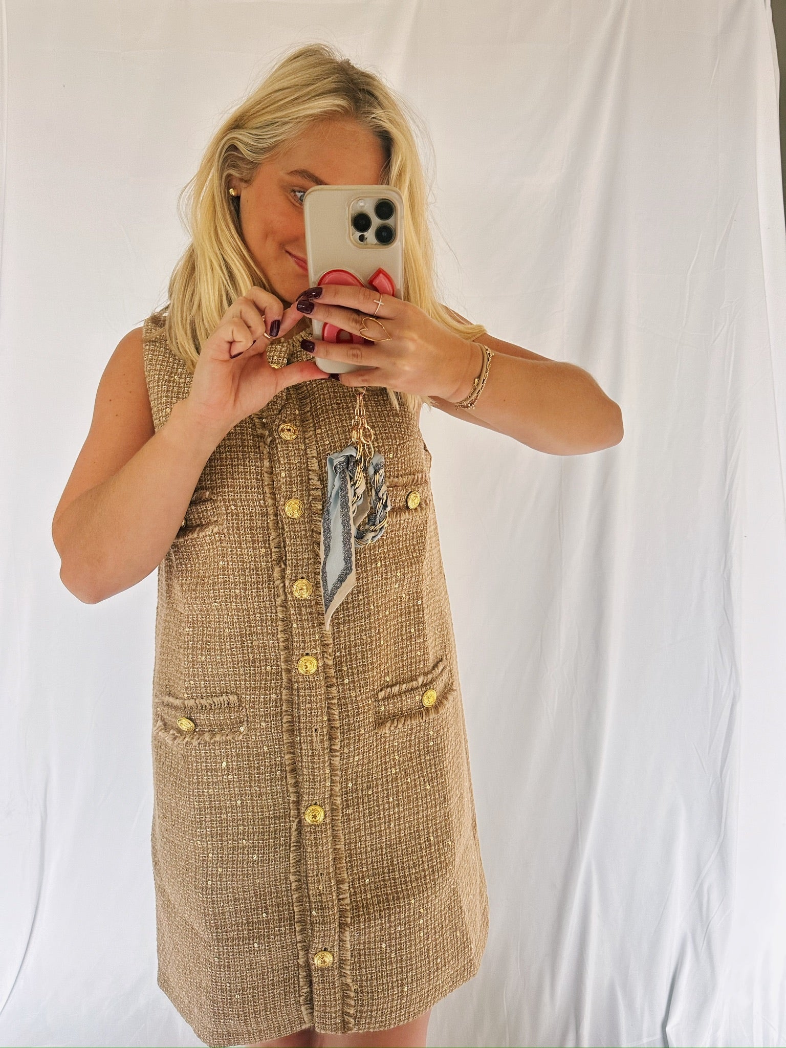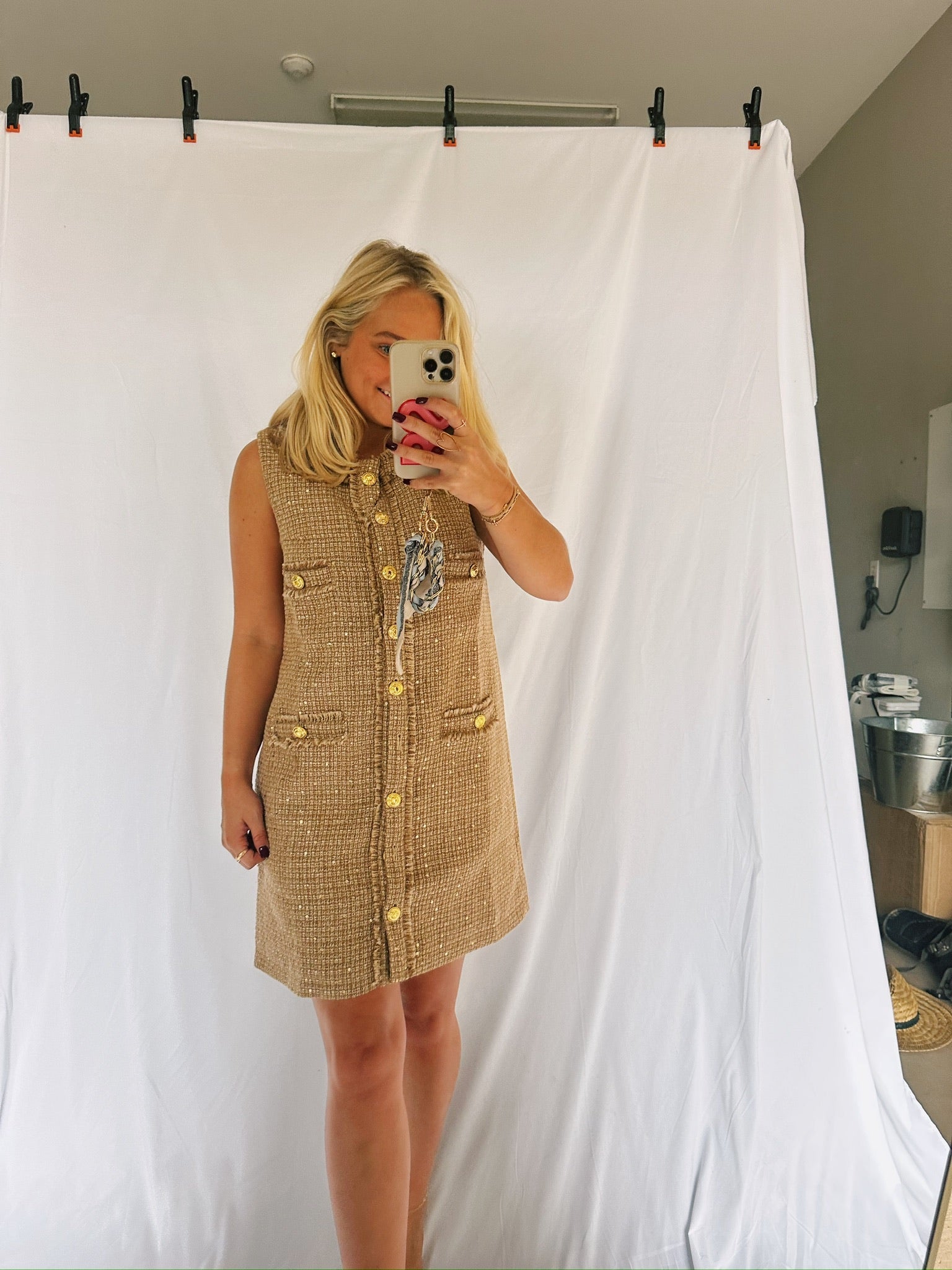 This tweed dress is perfect for thanksgiving! The gold buttons add perfect detail to the mini dress!