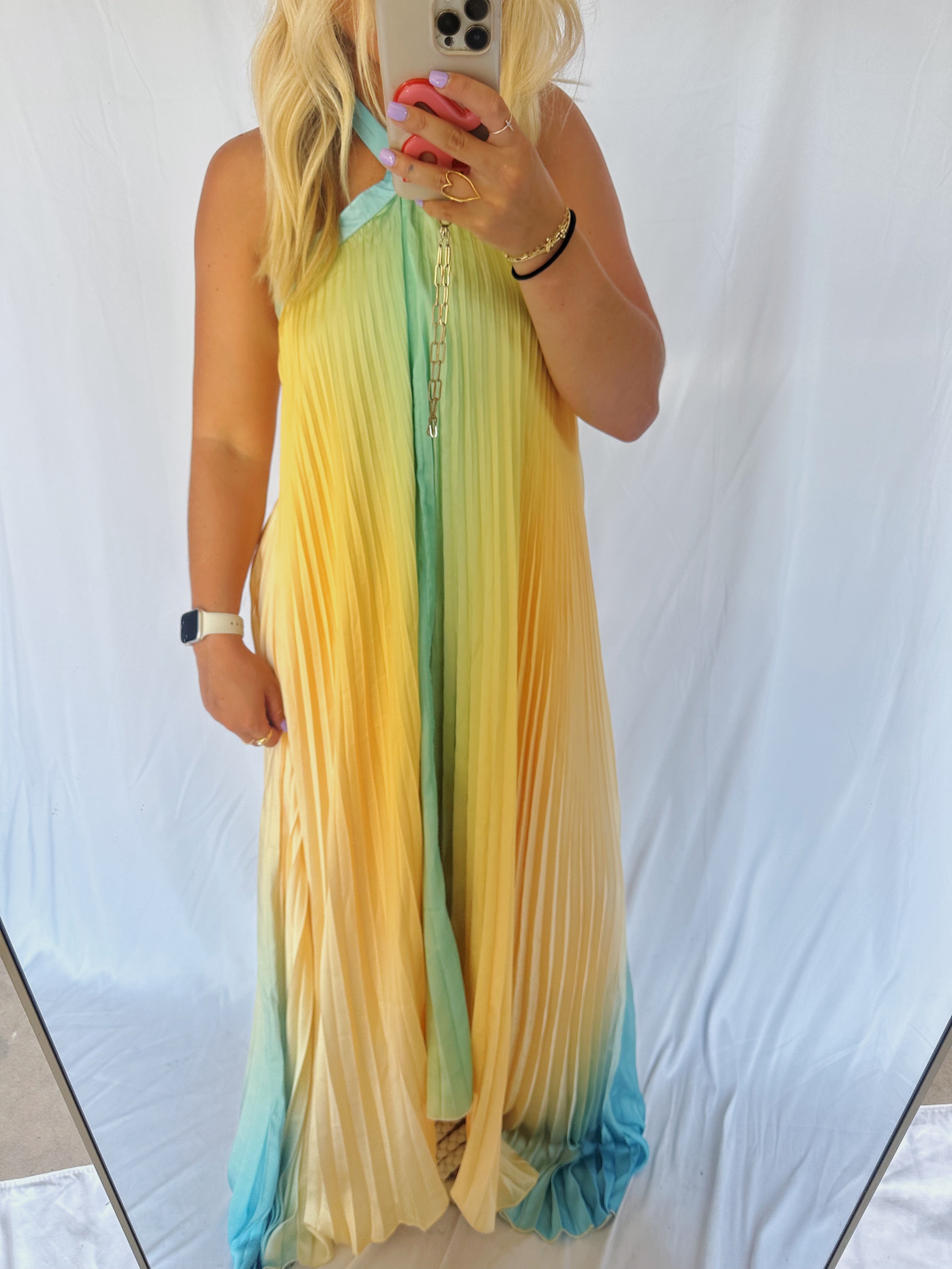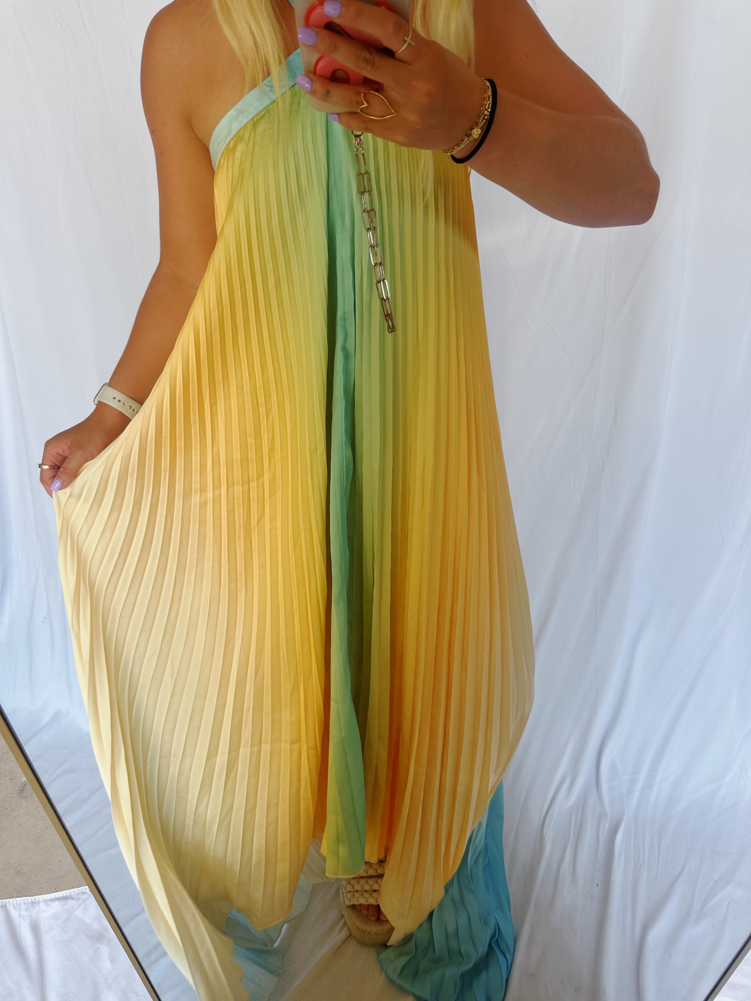 This sunkissed on the beach maxi is absolutely perfect! We could not recommend this dress enough! So airy and does not show any sweat or water marks! The strap around the neck ties to fit you perfect!