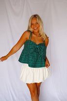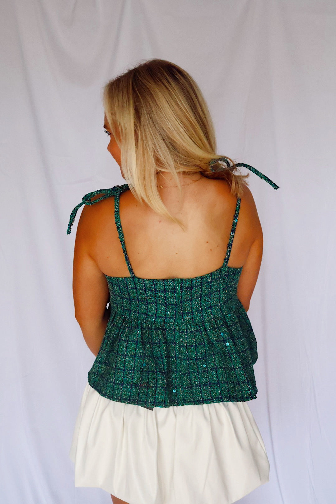 A definite crowd favorite! Our tweed babydoll top is perfect for the season. You will love this sequin bow detail top that can easily be dressed up or down depending on your event!