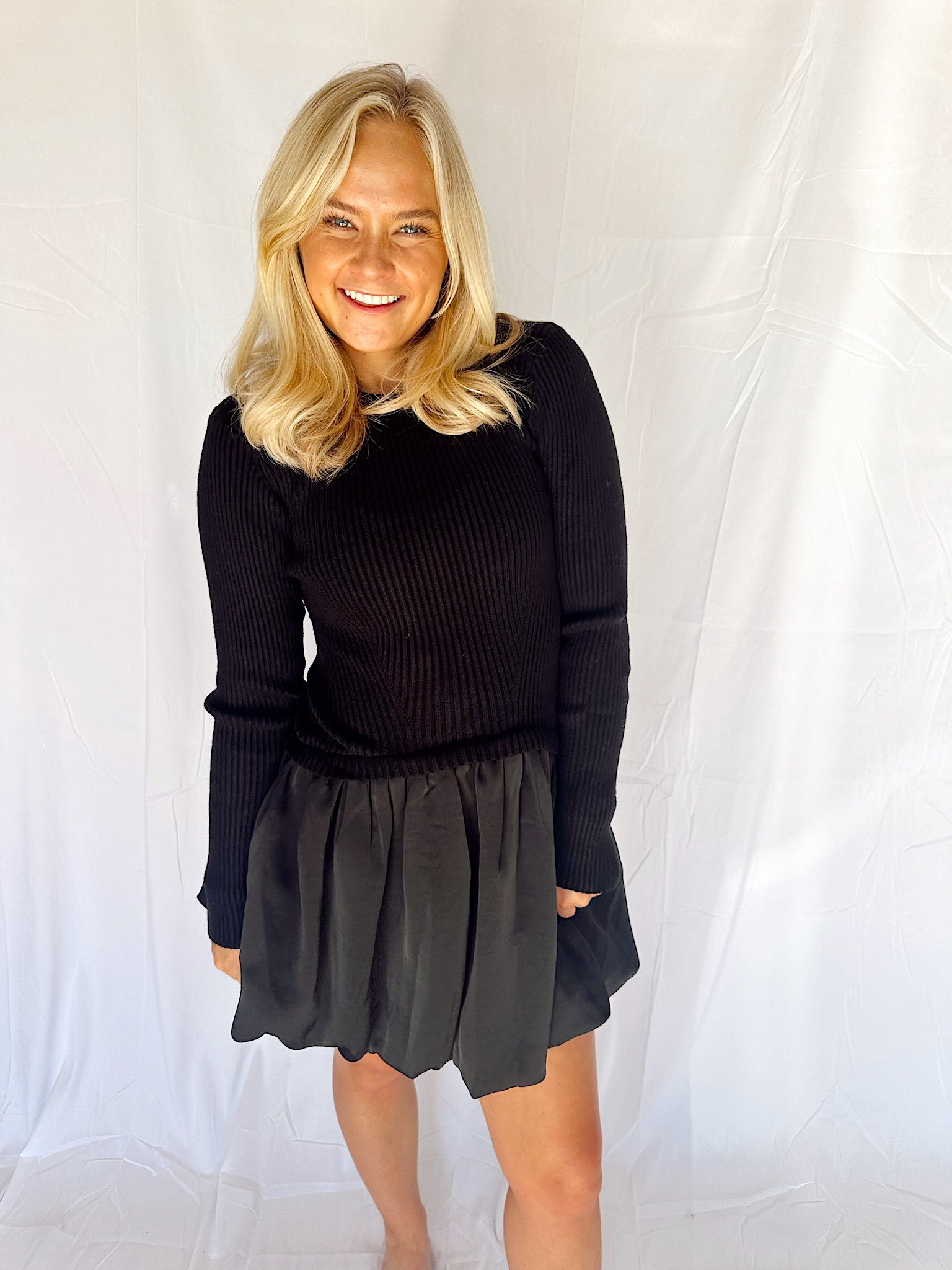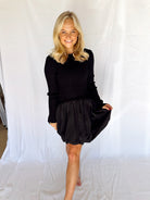 Our ribbed sweater mini dress, is truly the most comfortable dress ever! So perfect for this holiday season!