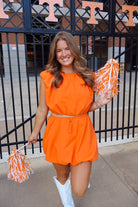 Our bubble skirt set in orange is the perfect gameday outfit! We are obsessed! The skirt comes with a string to fit you perfectly! The perfect airy and comfortable material!