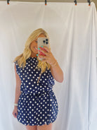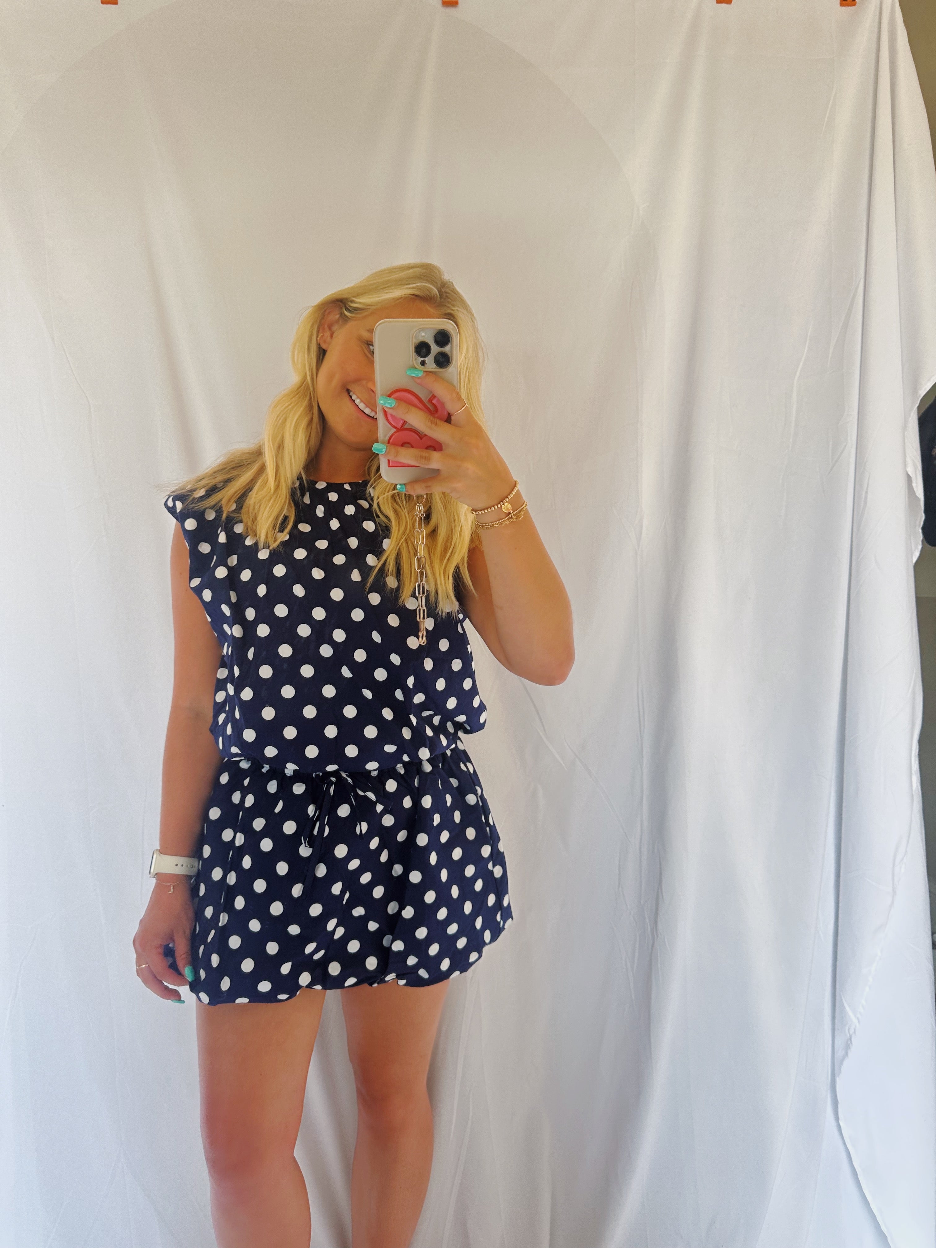 This polka dot bubble set! A perfect outfit for you this summer! So cozy and so comfortable! The skirt has an elastic strap around the waist to fit you perefctly!