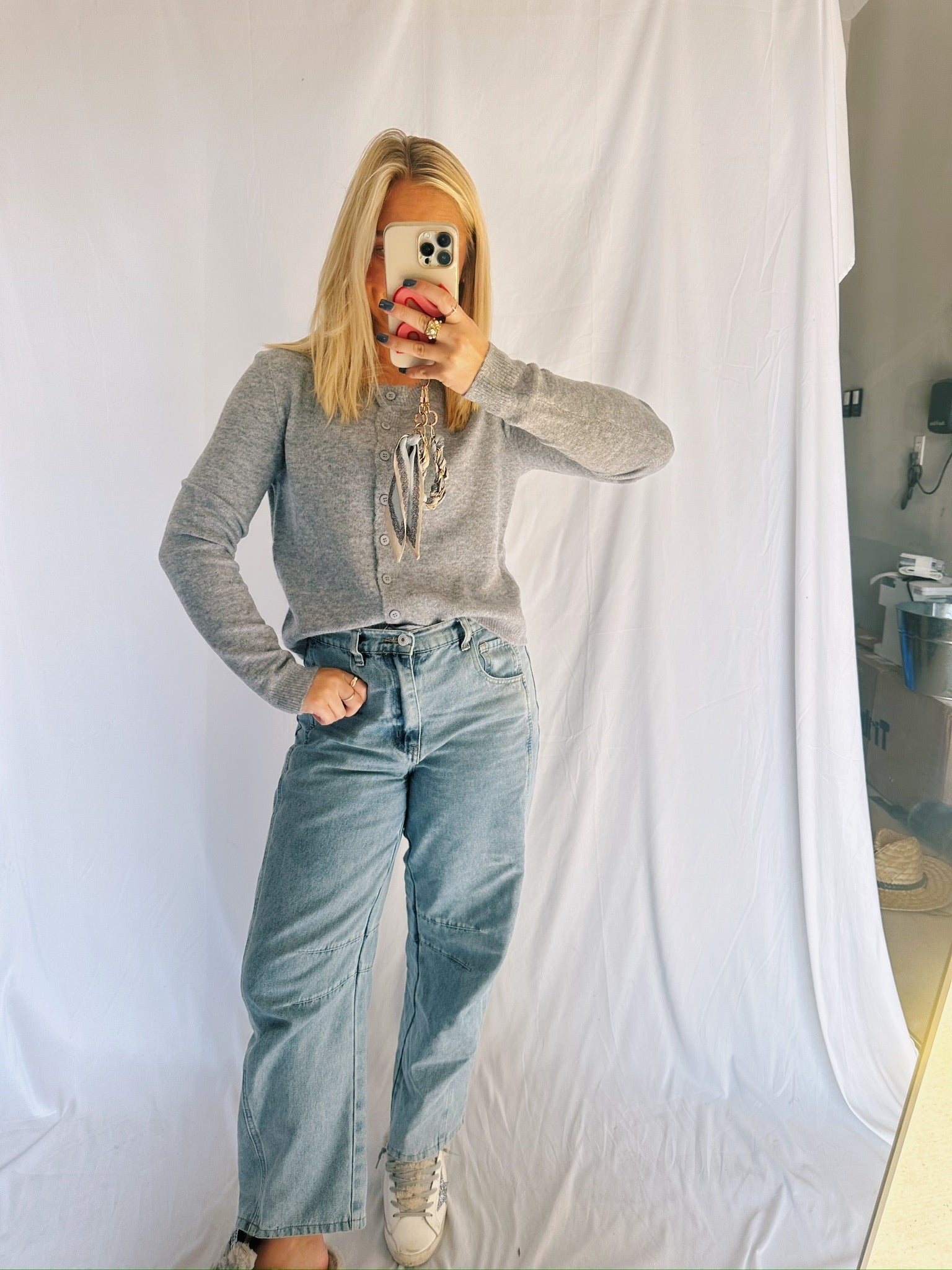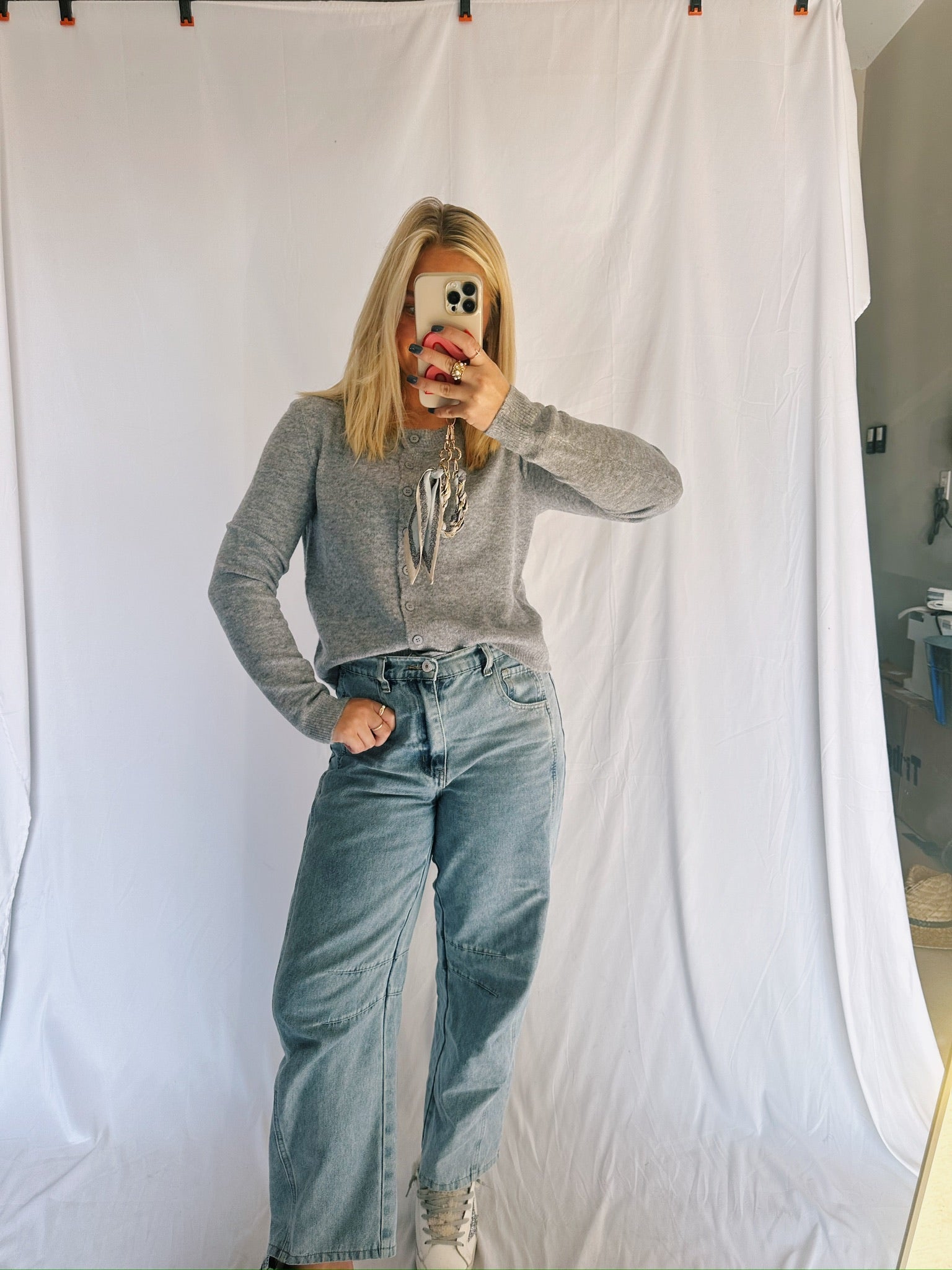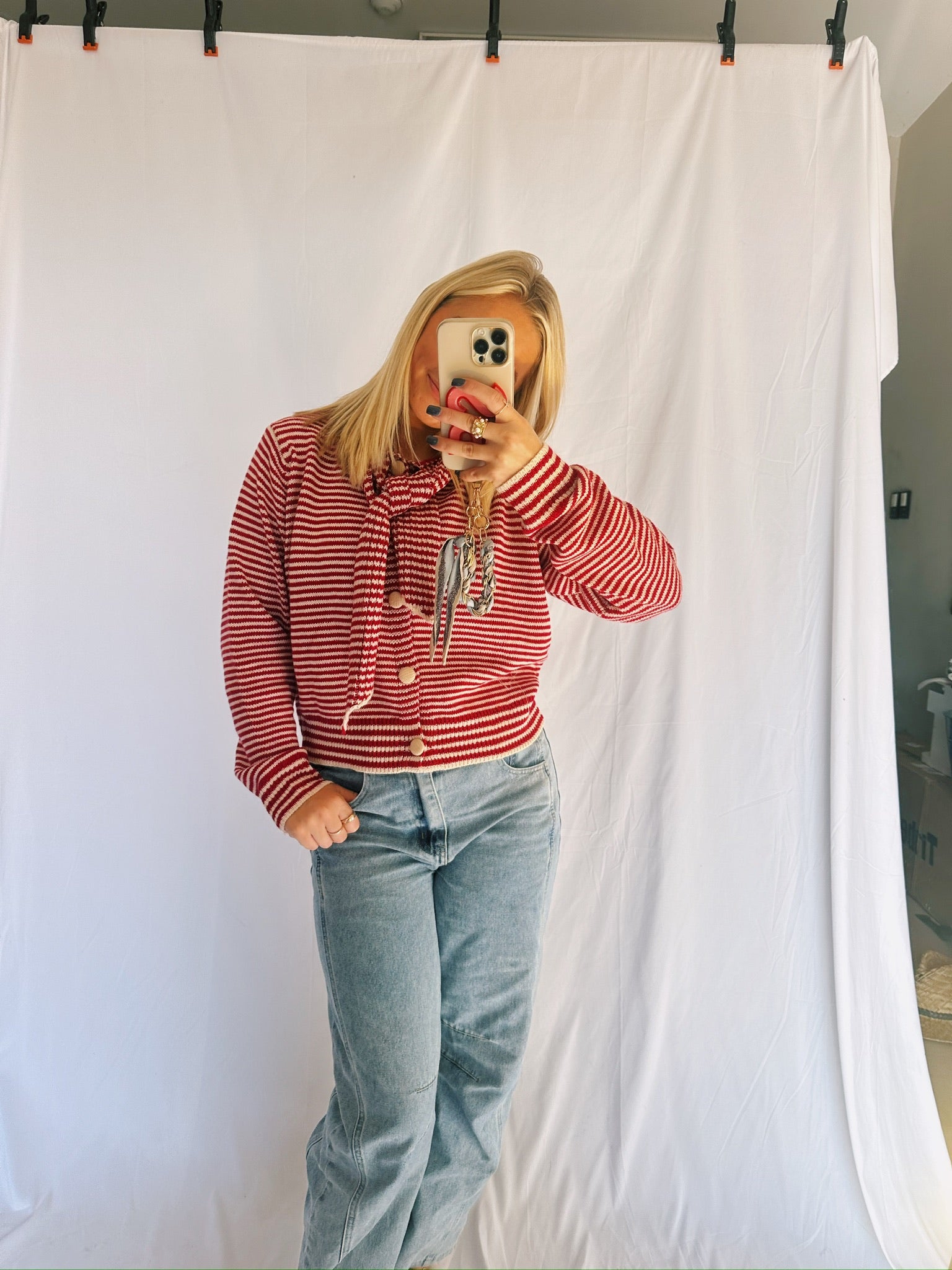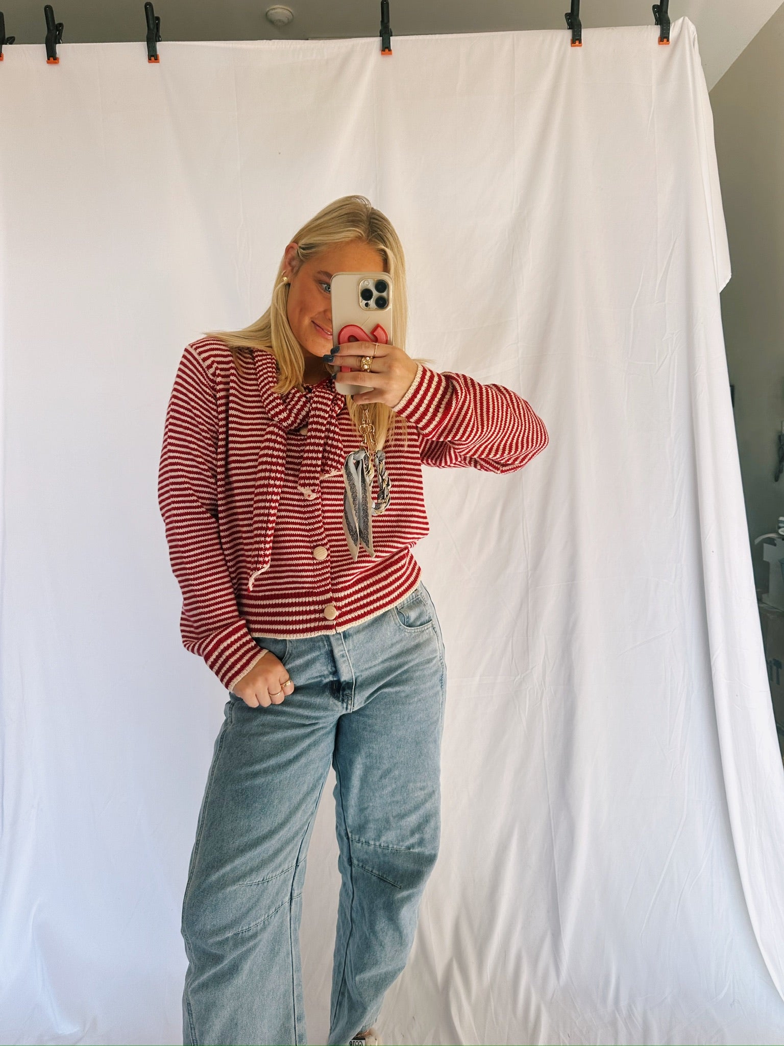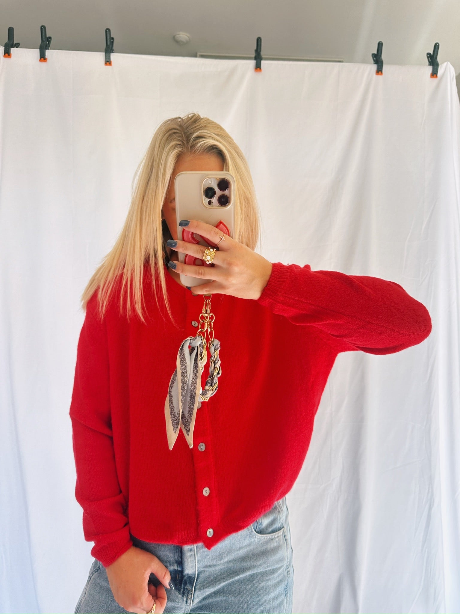 Red and Pink Cardigan Sweater