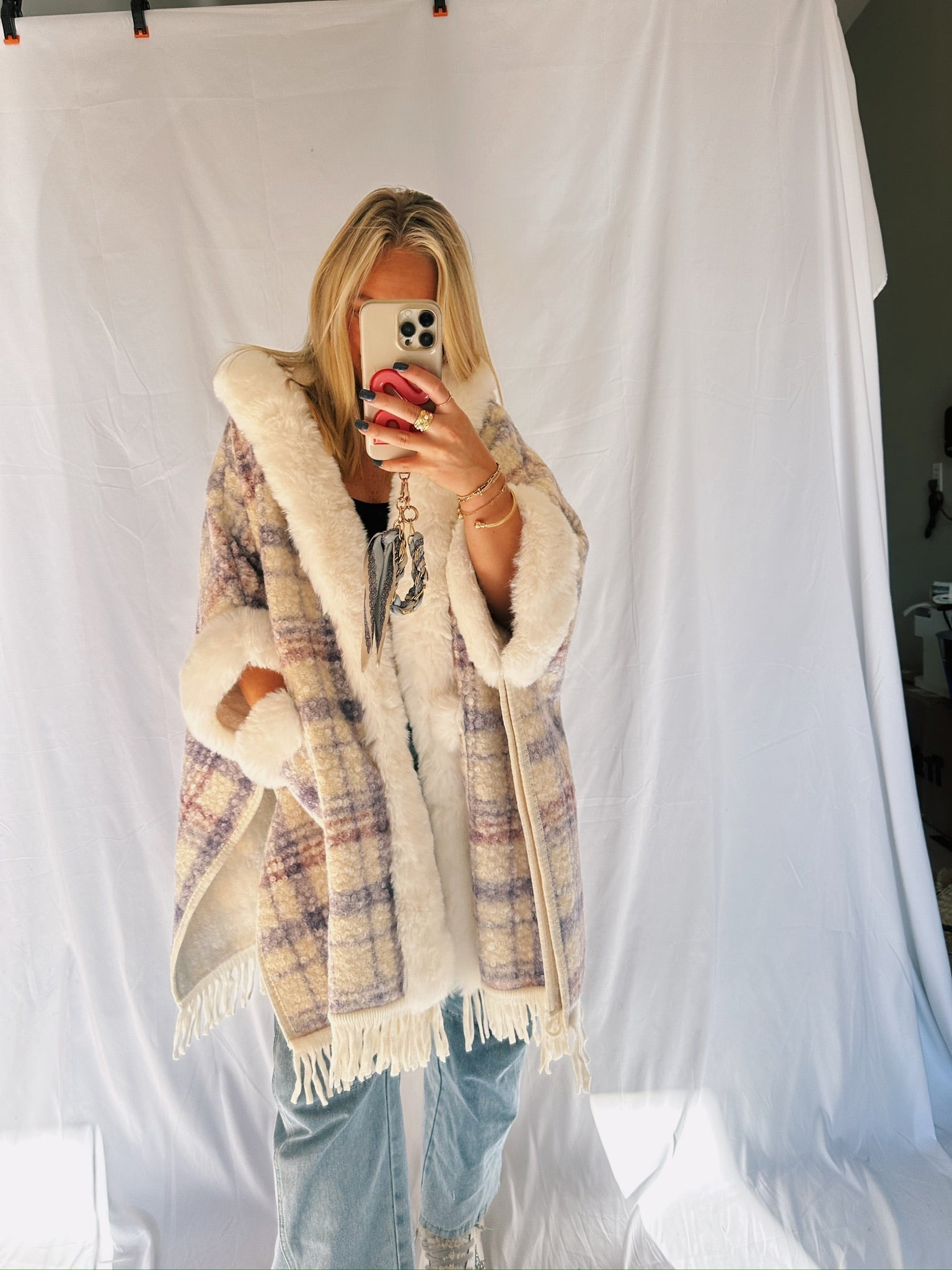 Oversized Purple and Cream Long Sherpa