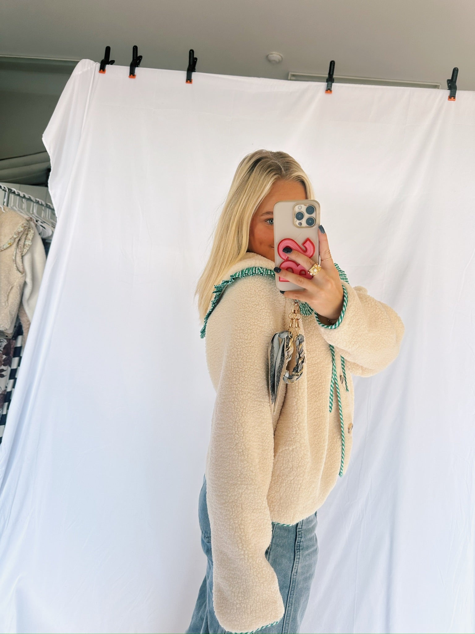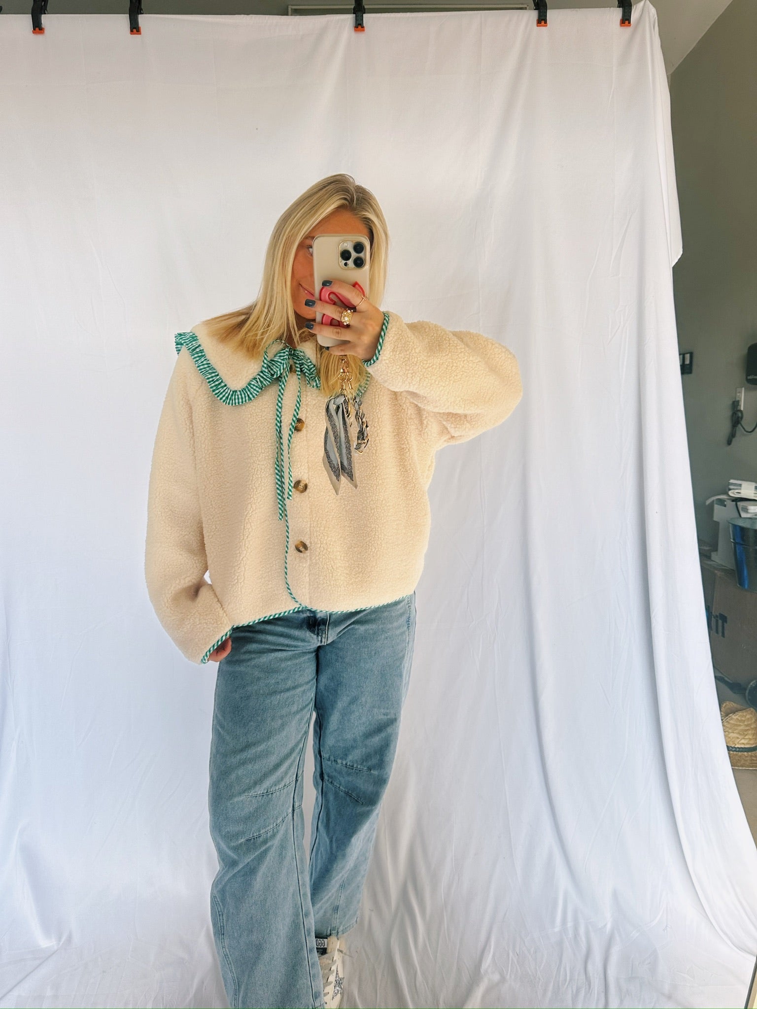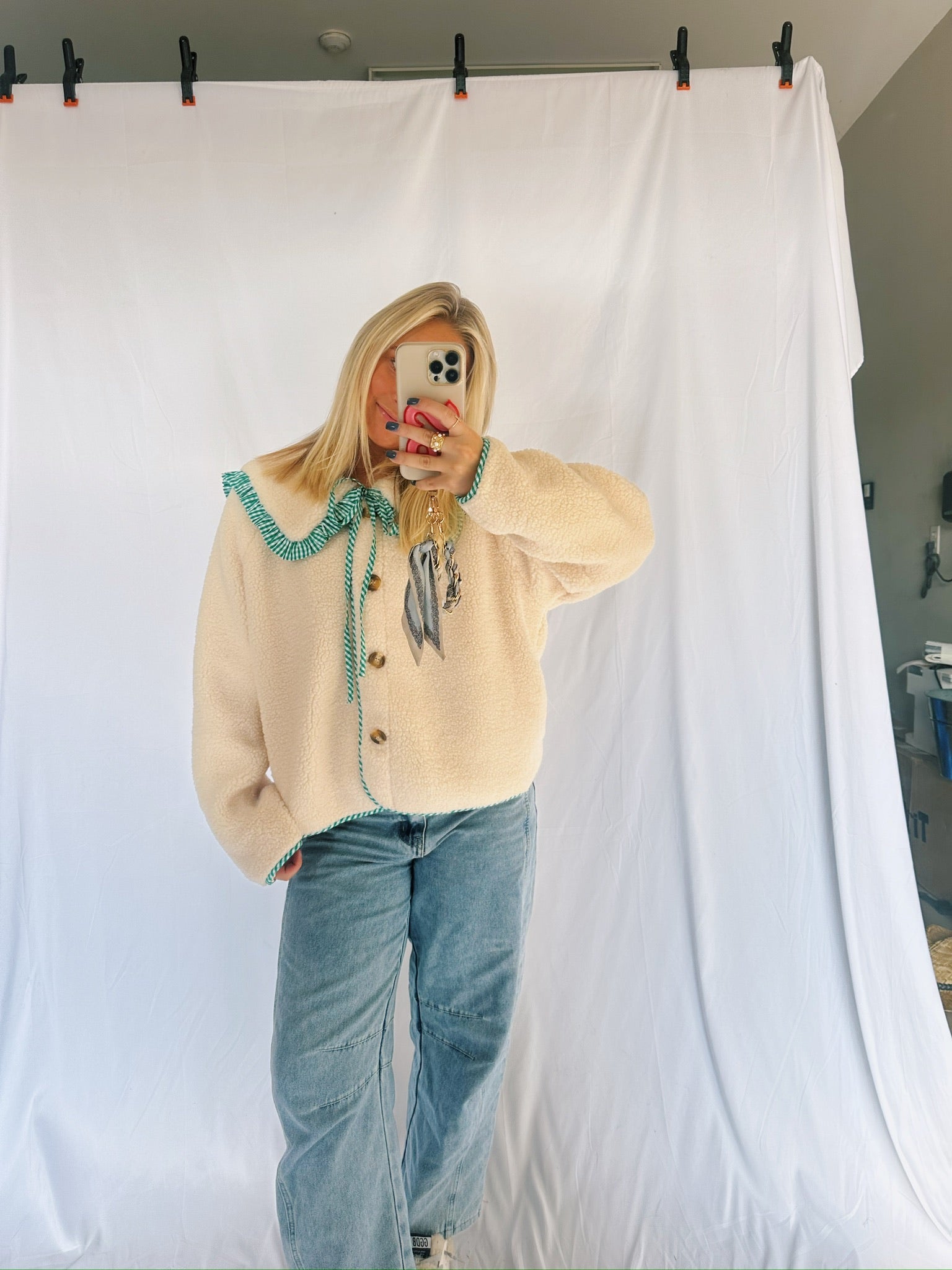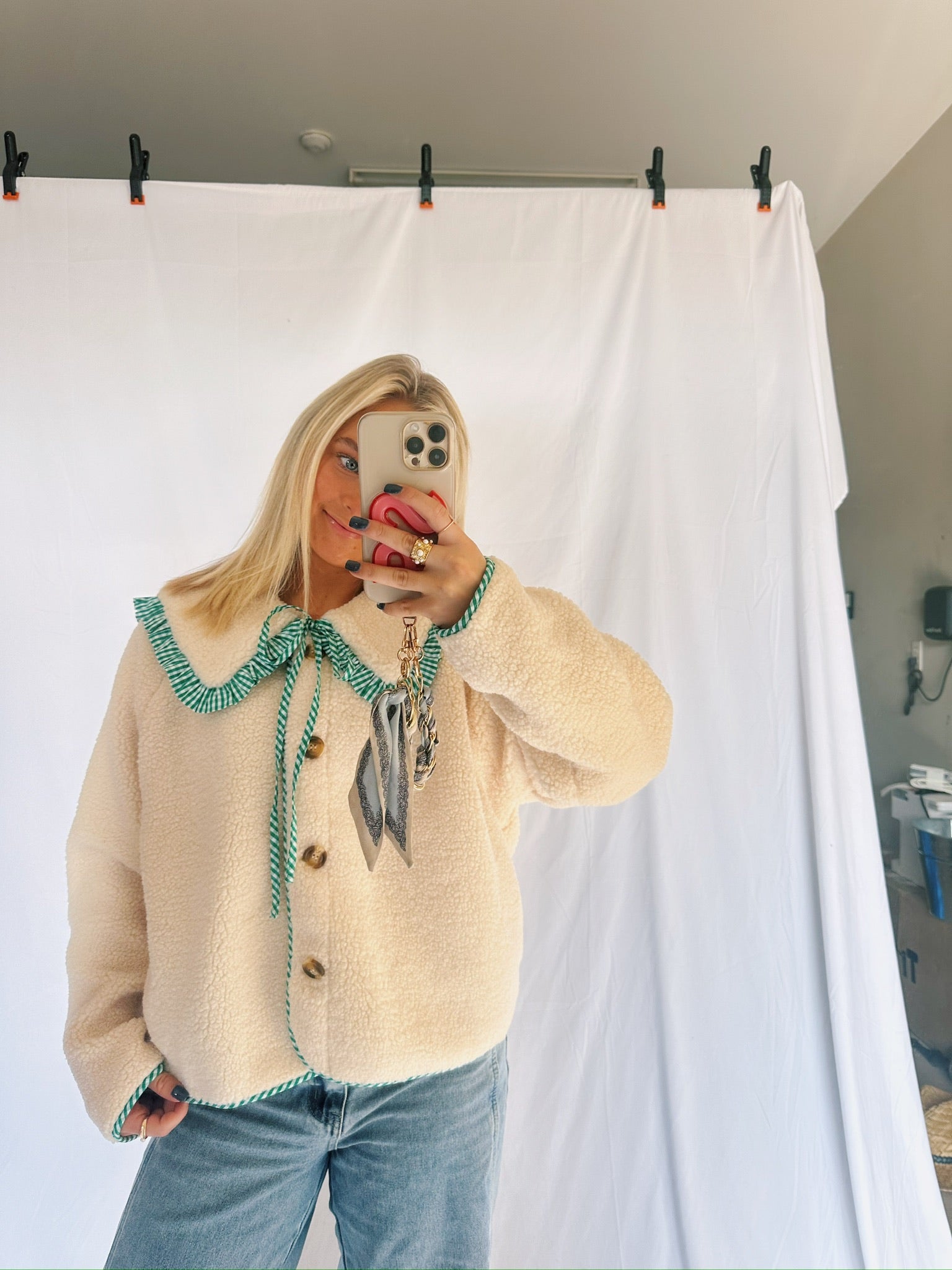 Gingham Ruffle Jacket In Green
