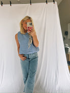 Our dusty blue bubble top is the perfect staple to have! We are in love with the color!