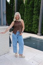 The most in style top right now! So cute and perfect for any occasion! This top fits true to size, has buttons all the way up the front, and a cute bow in the back!