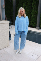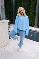 Our stripes on stripes sweater has always been a best seller, so we brought it back in blues! the most comfortable sweater that can be styled in so many different ways!