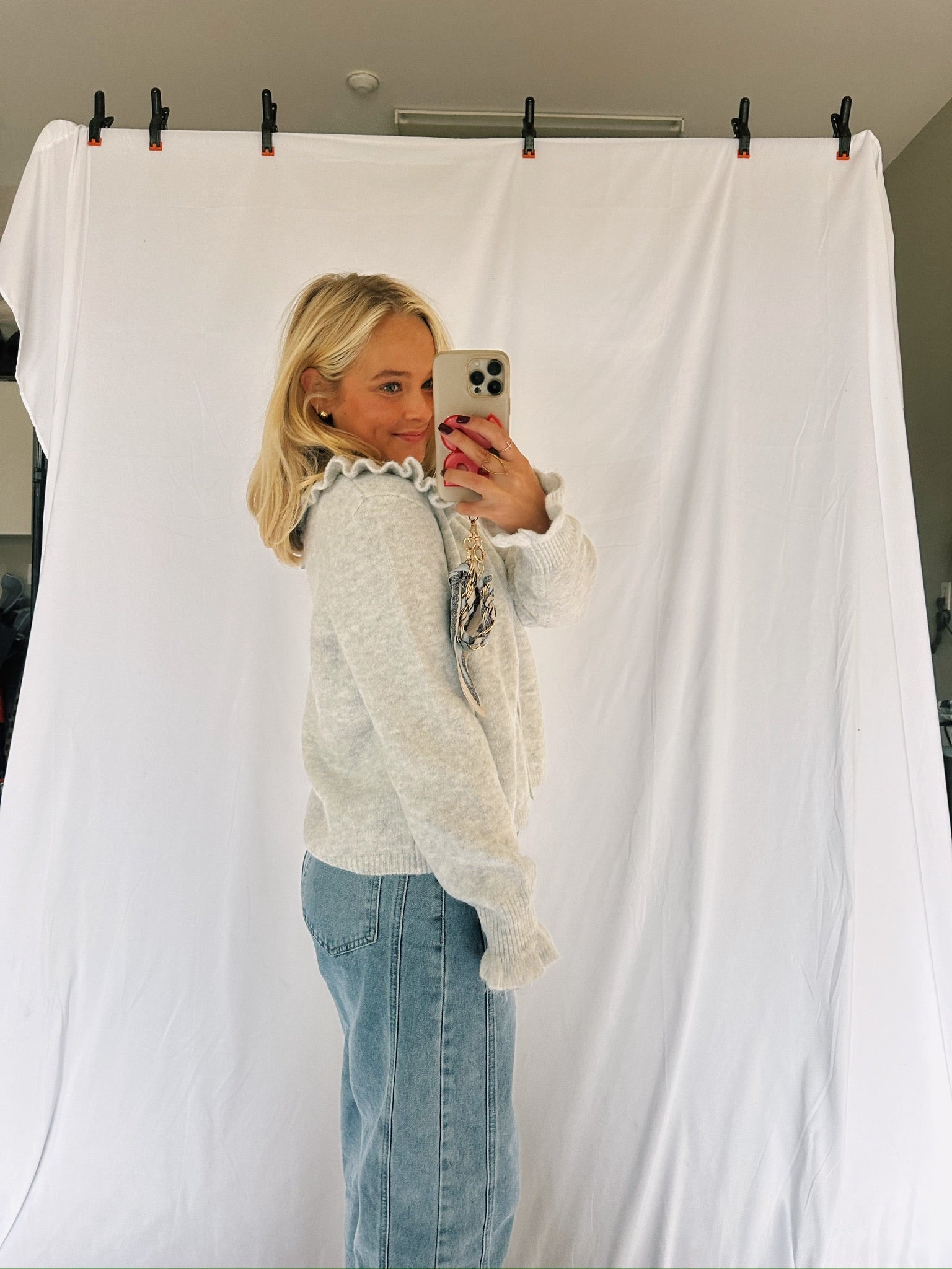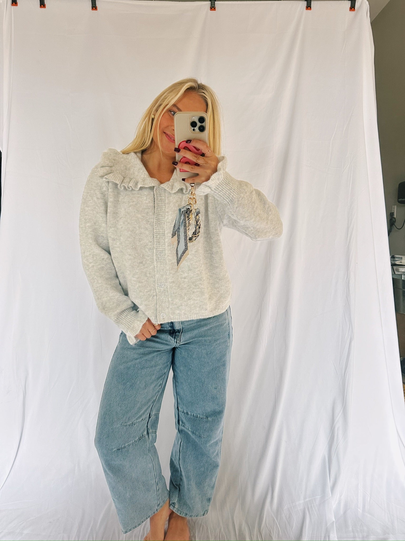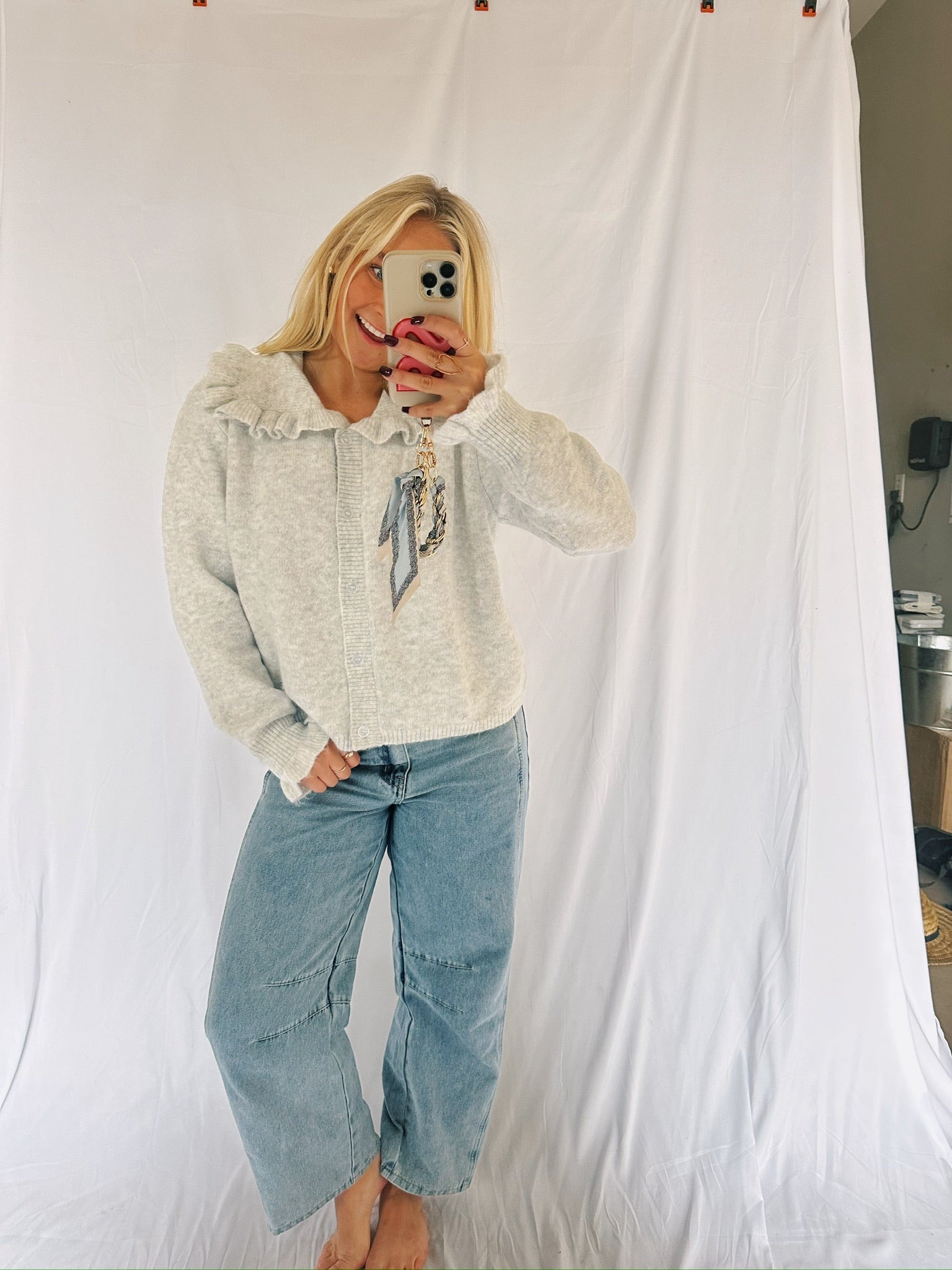 Grey Ruffle Collar Sweater