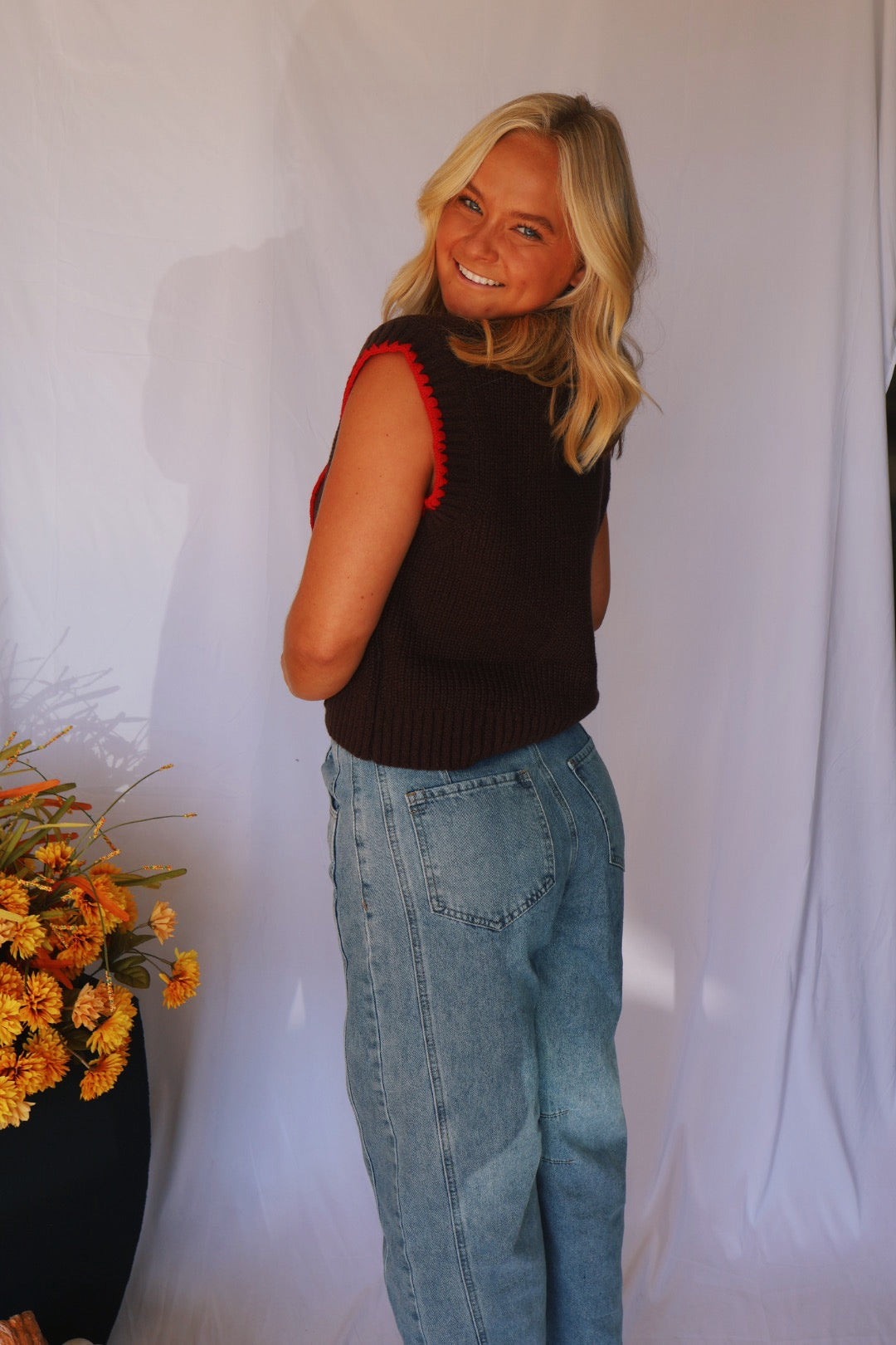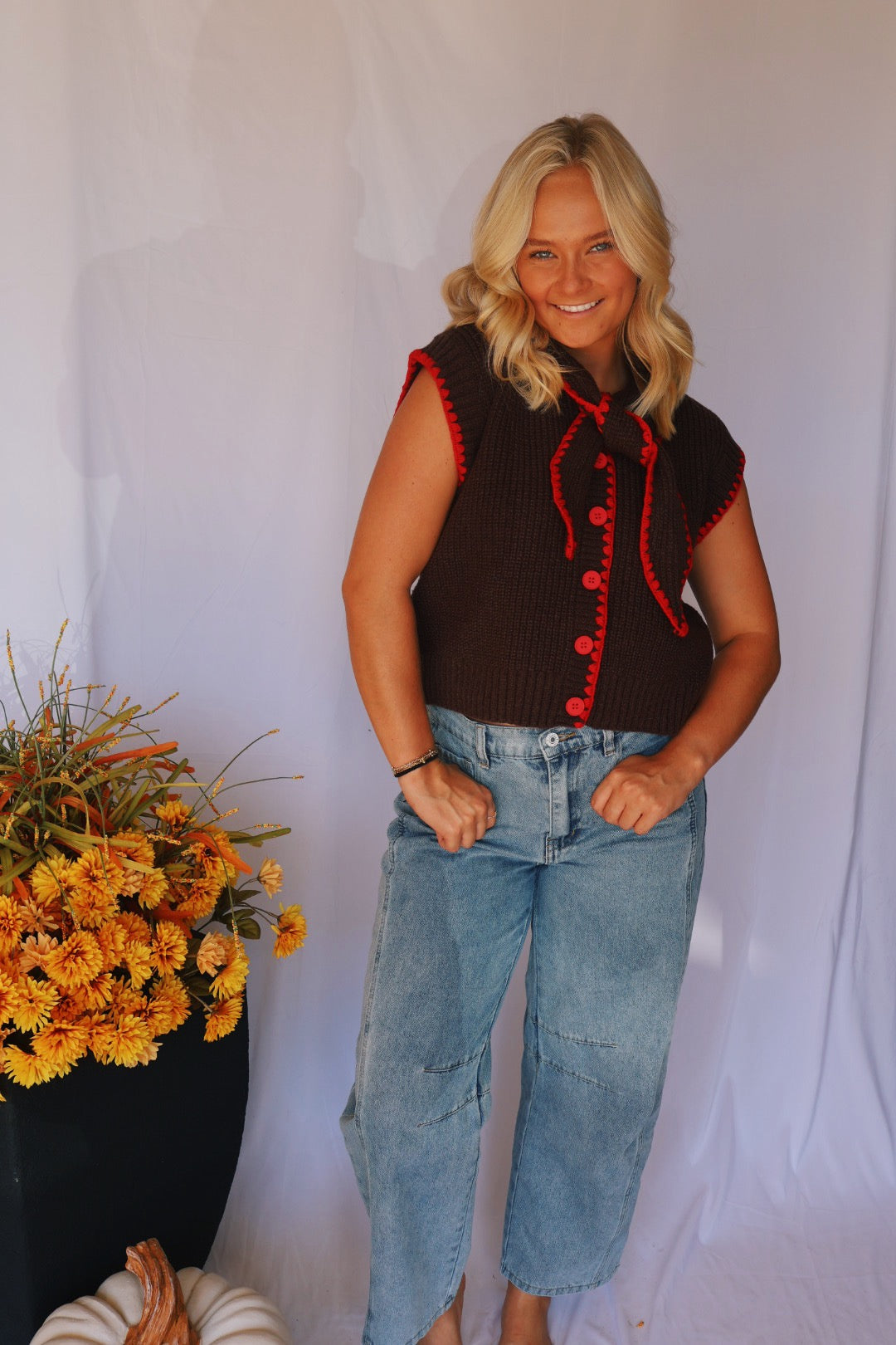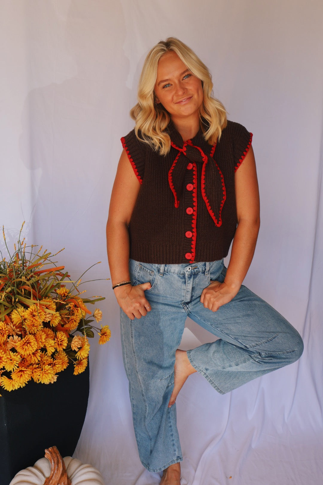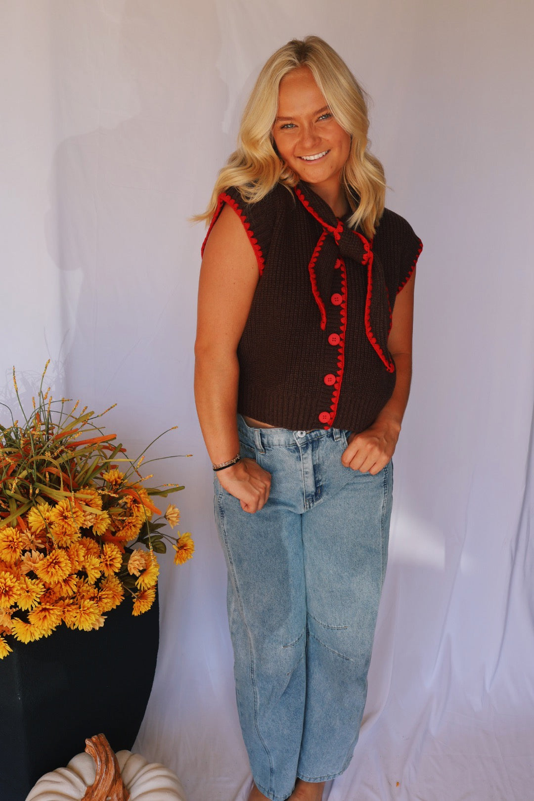 Brown with Red Trim Sweater Vest
