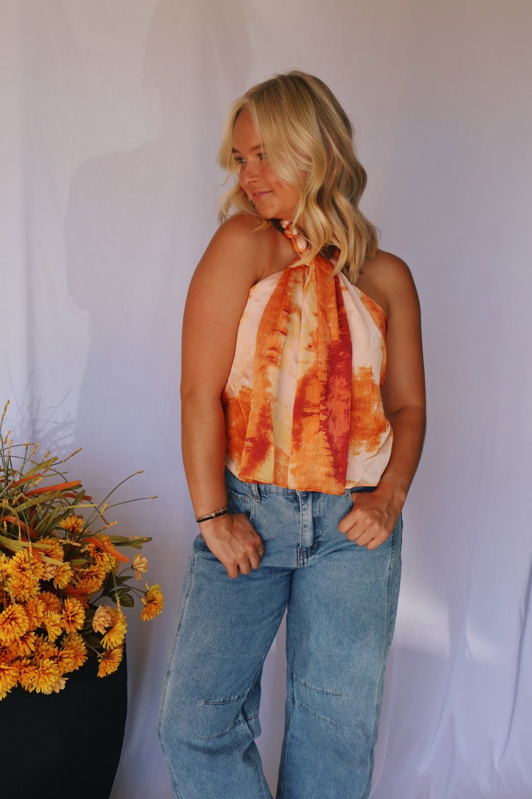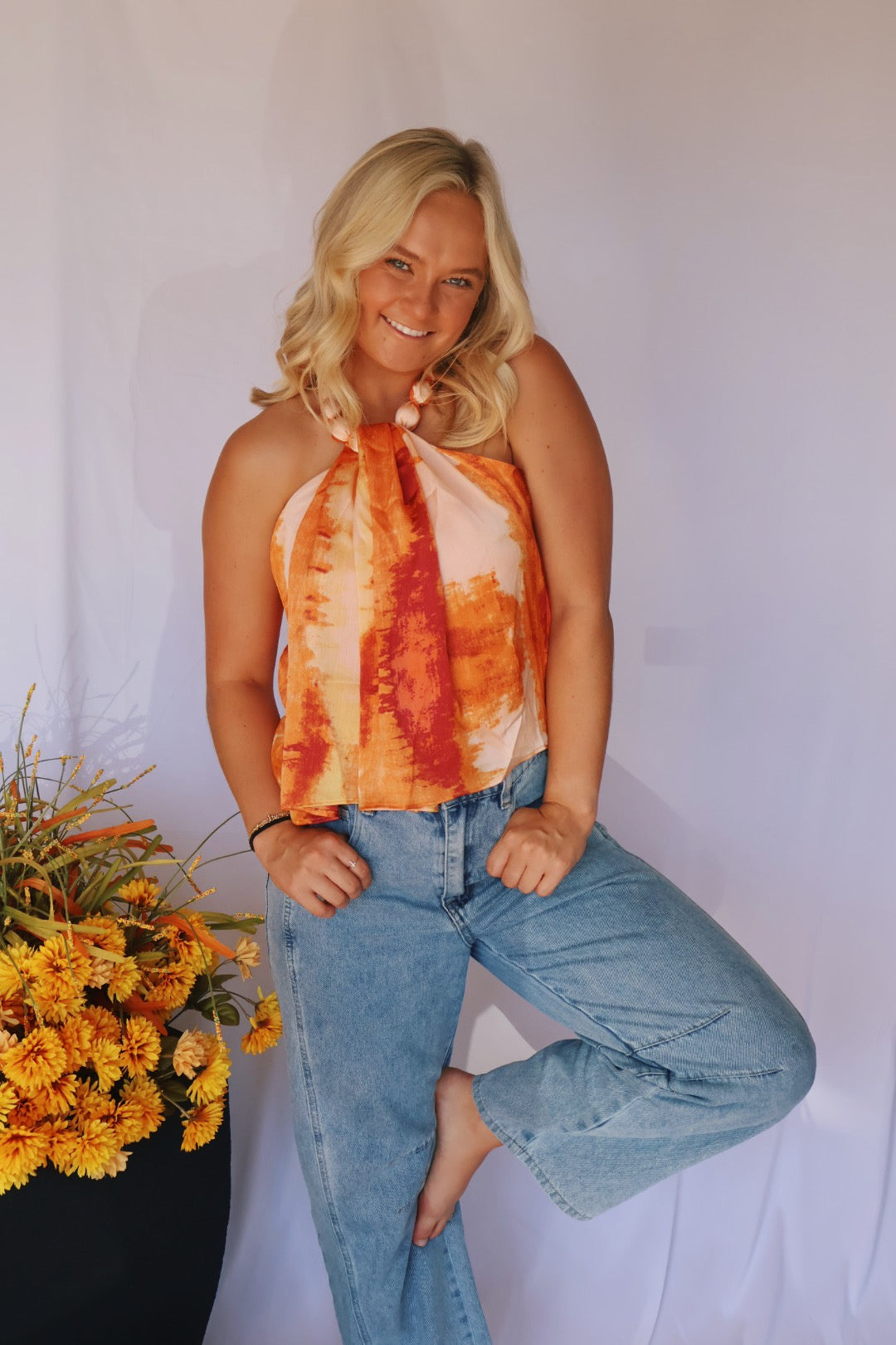 Ball Neck Ombre Top in Orange