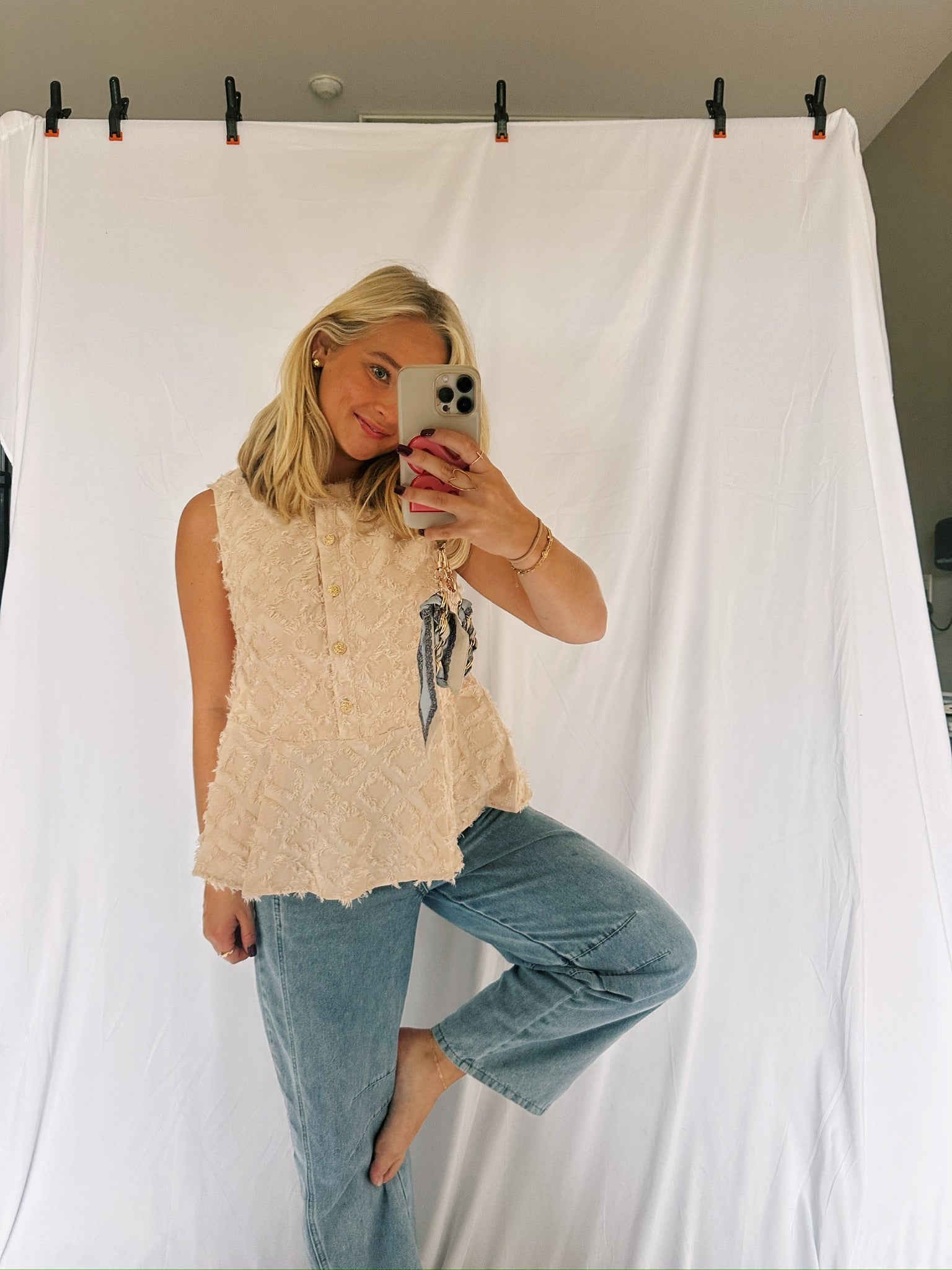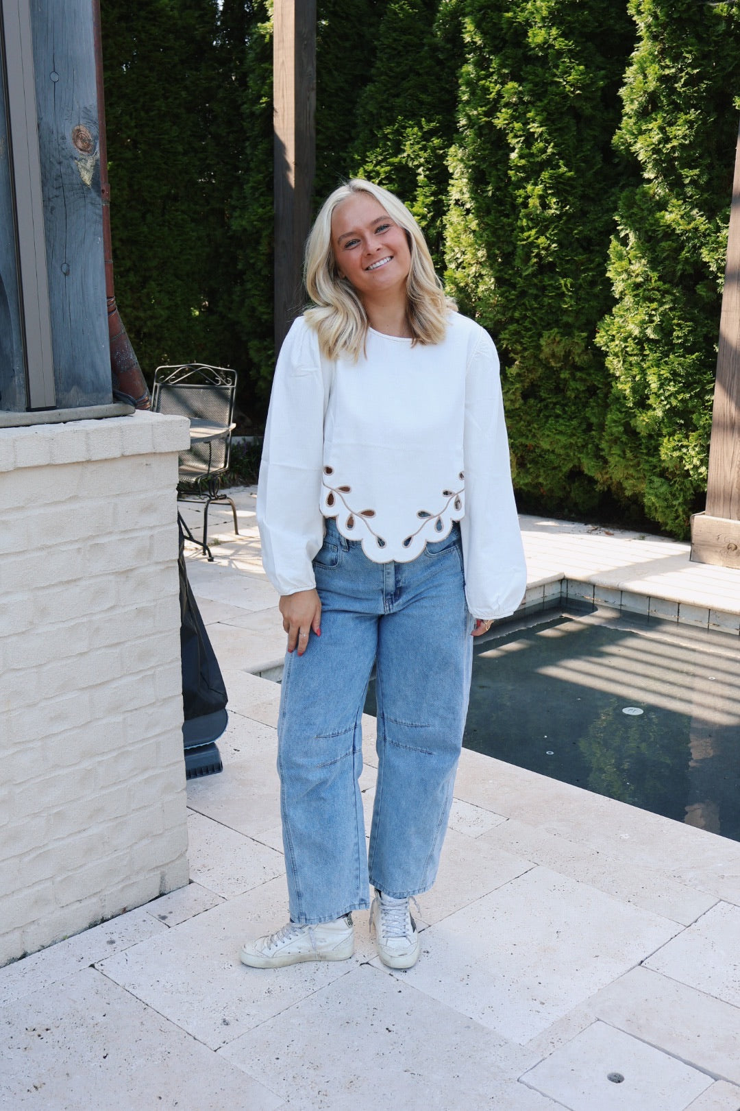 Ivory Detailed Pattern Top