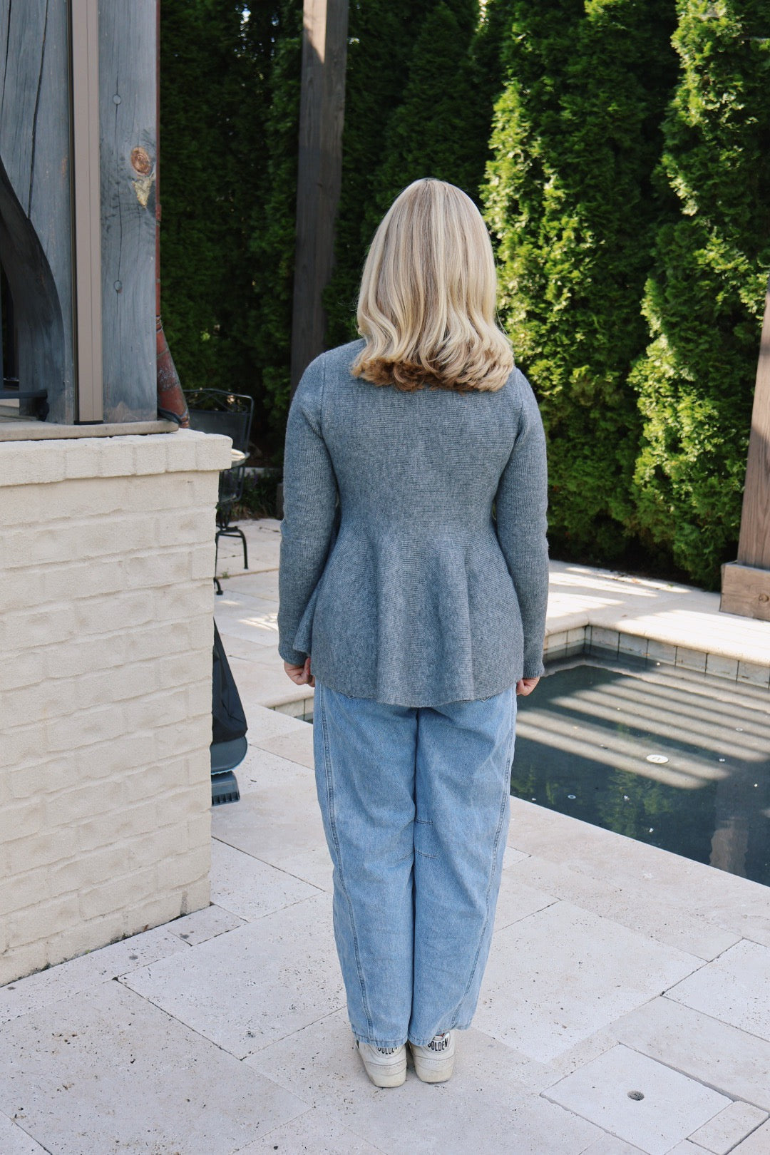 Grey Ruffle Hem Sweater